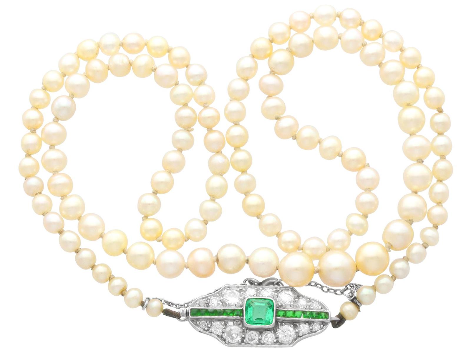 Single Strand Saltwater Natural Pearl, Emerald, Diamond and Peridot Necklace, White Gold Clasp – Antique (1 of 12)