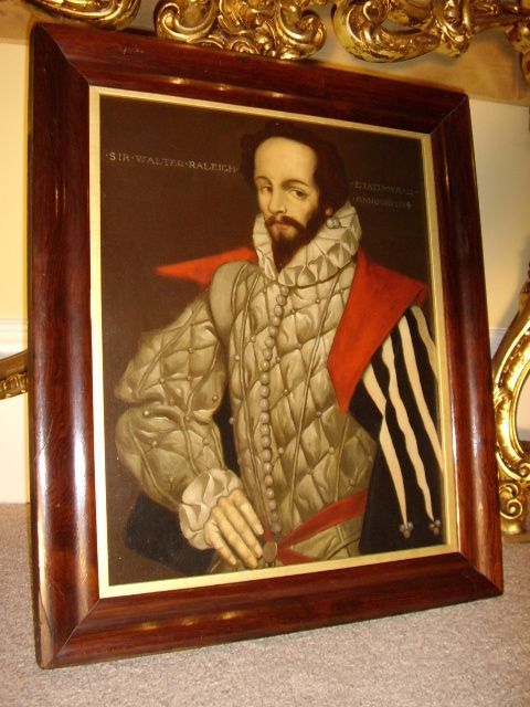 Sir Walter Raleigh 18th Century Oil Portrait Painting English School in Mahogany Veneered Frame