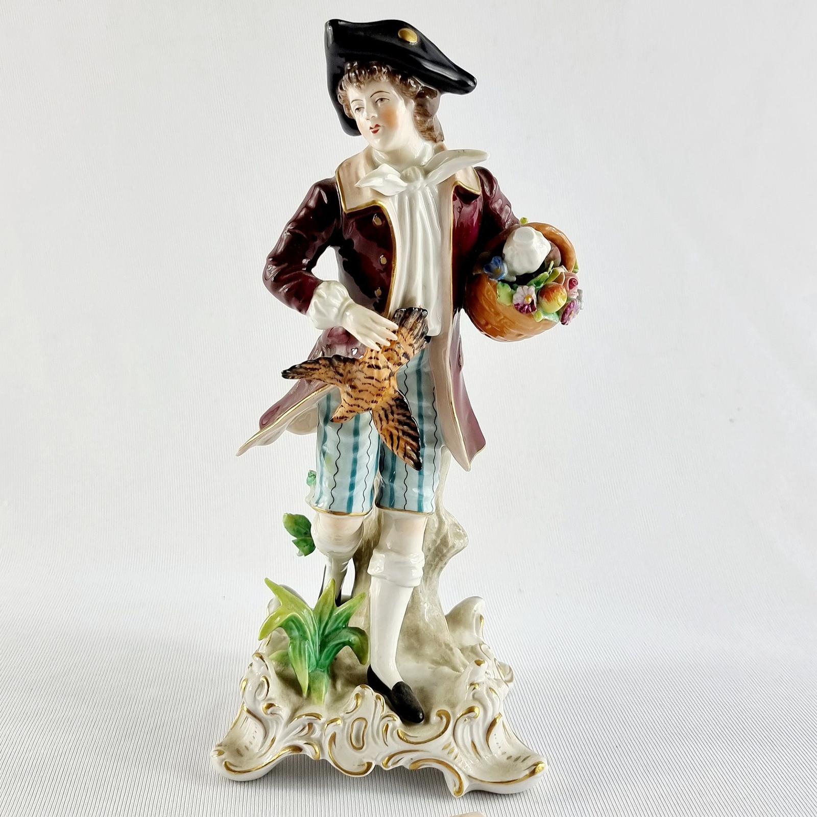 Sitzendorf German Figure of Man with Flowers & Pheasant