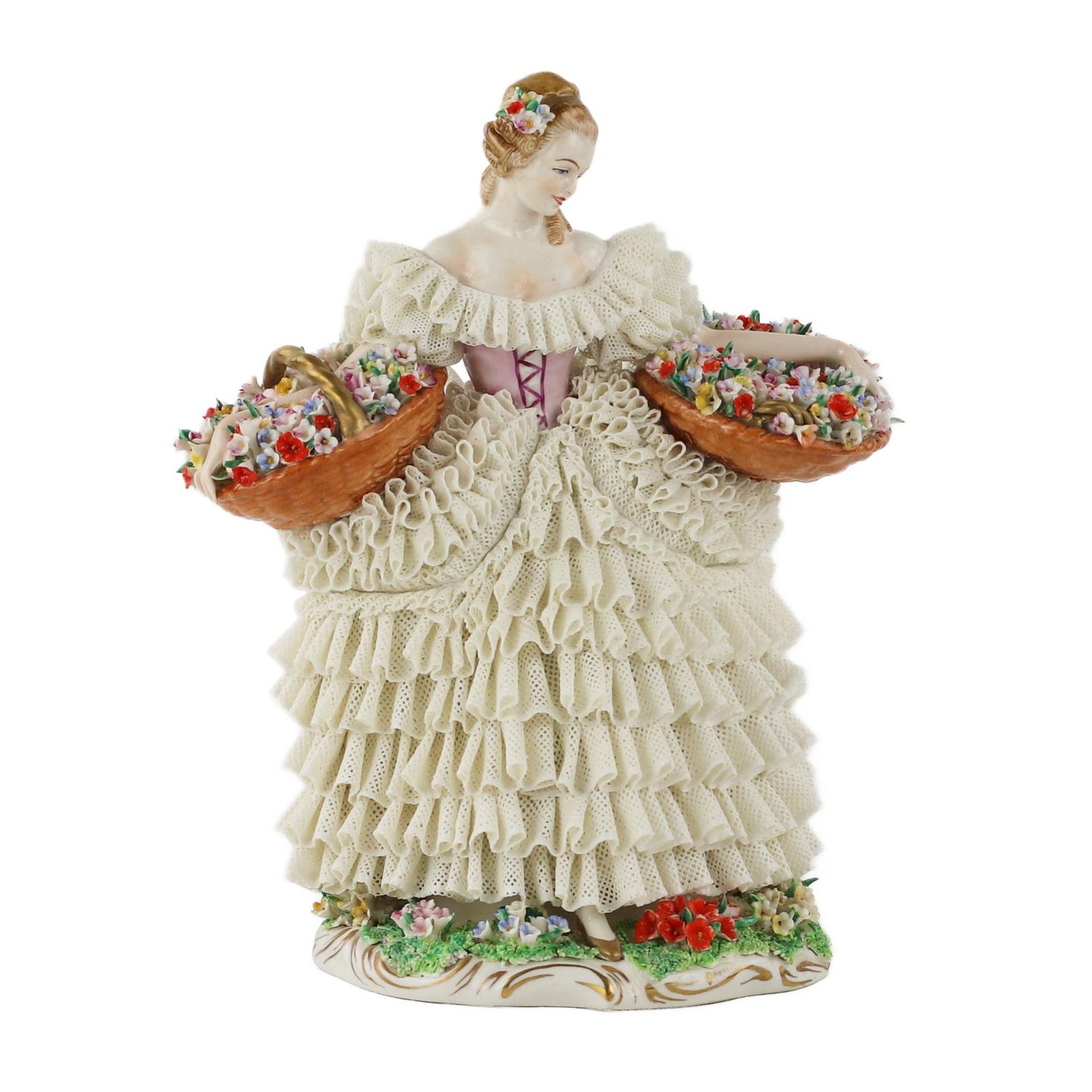 Sitzendorf Porcelain. Porcelain figurine of the Flower Girl. 20th century.