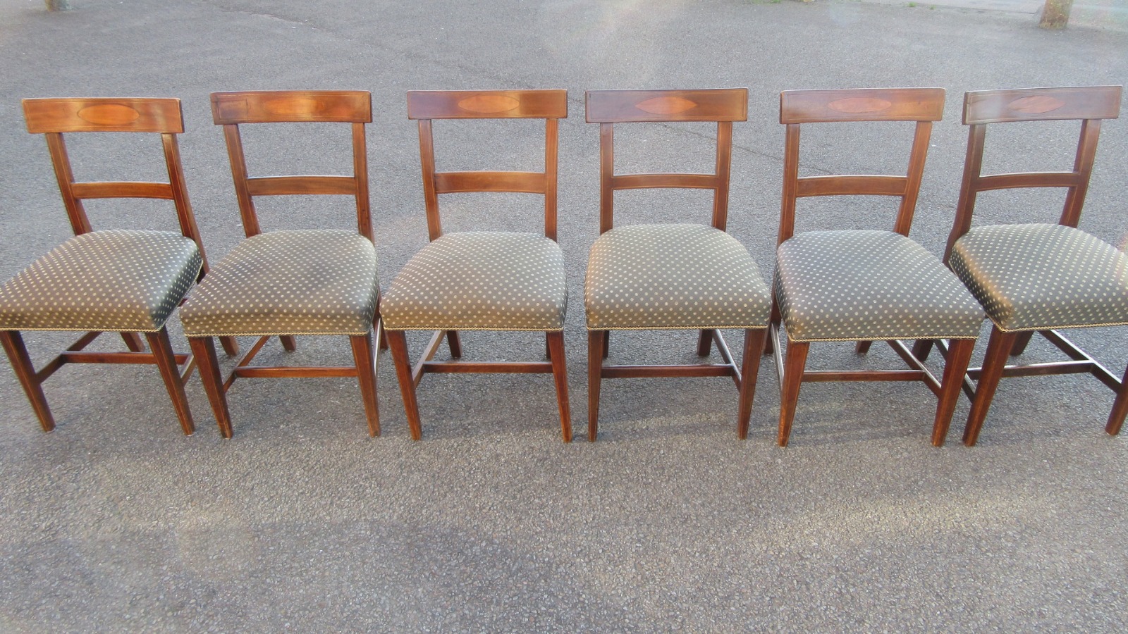 Six Antique Georgian Inlaid Mahogany Dining Chairs