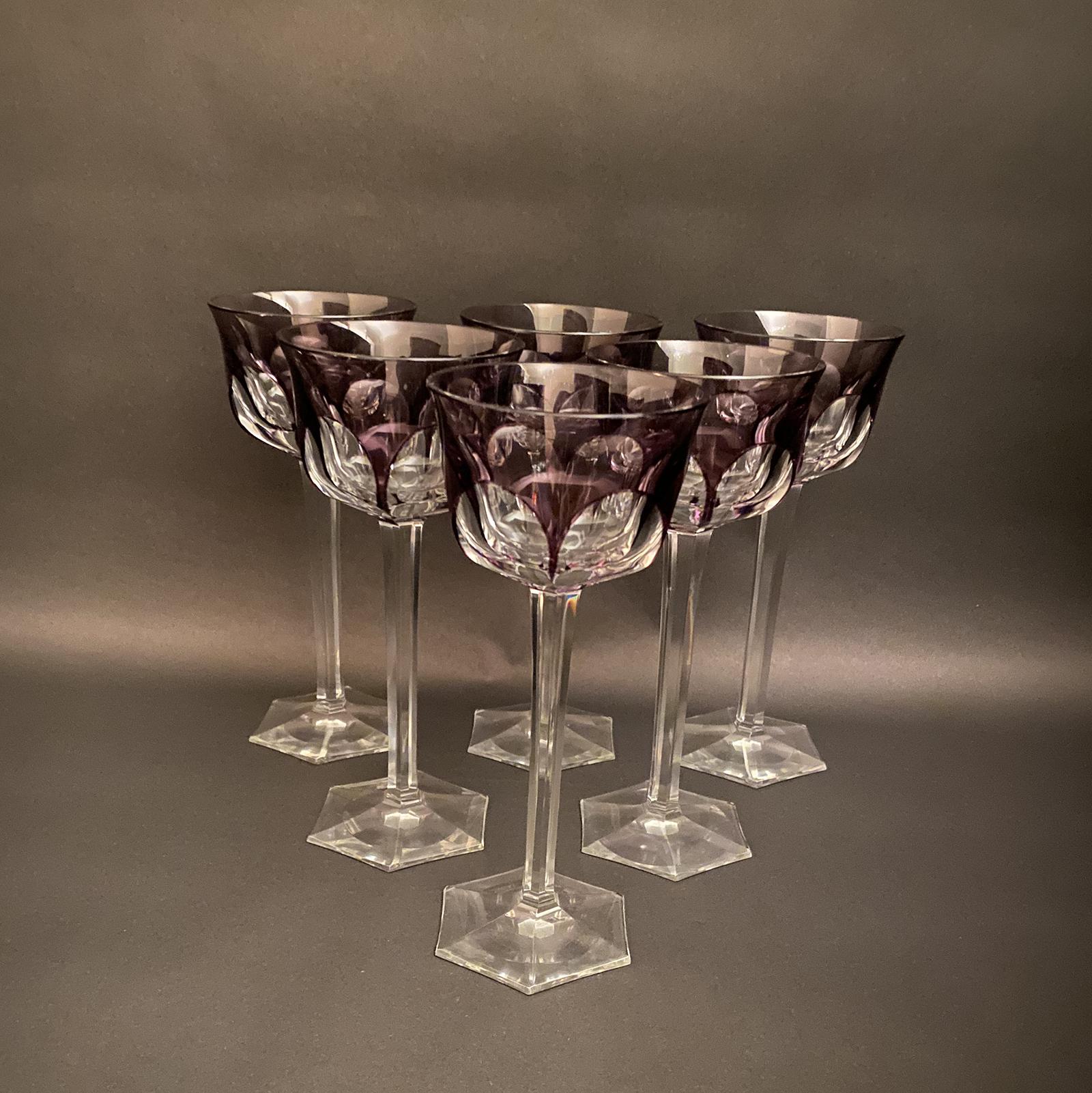 Six Baccarat 'Malmaison' Amethyst Crystal Wine Glasses