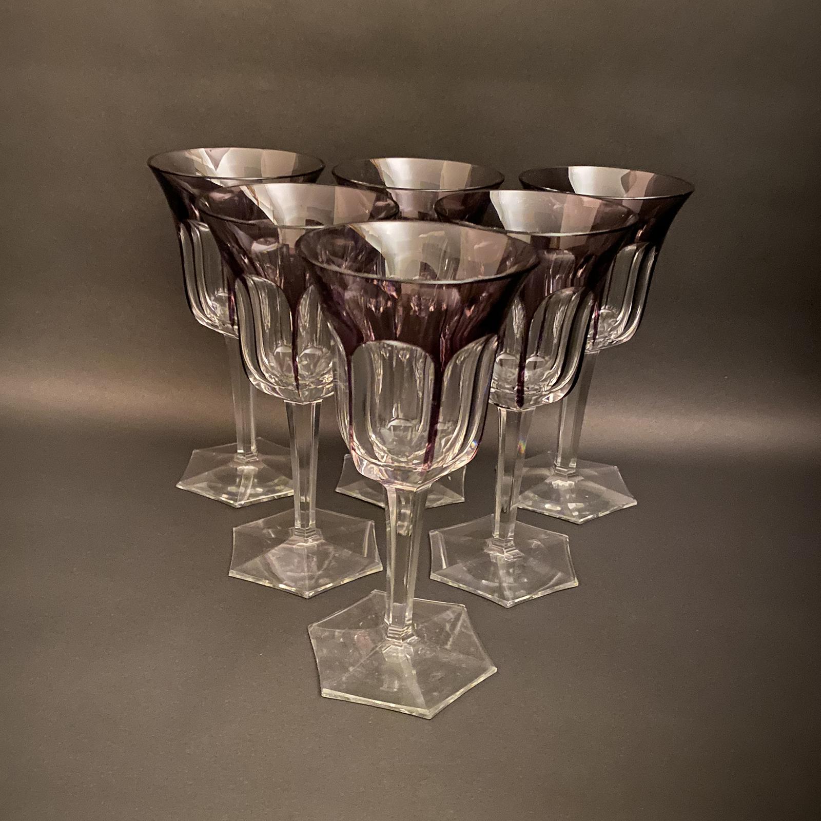 Six Baccarat 'Malmaison' Amethyst Crystal Wine Glasses