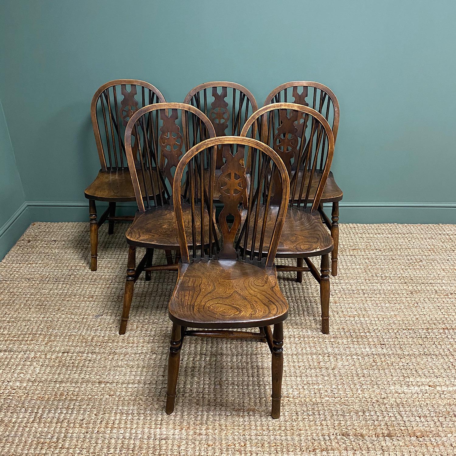 Six Country House Kitchen Elm Antique Windsor Chairs