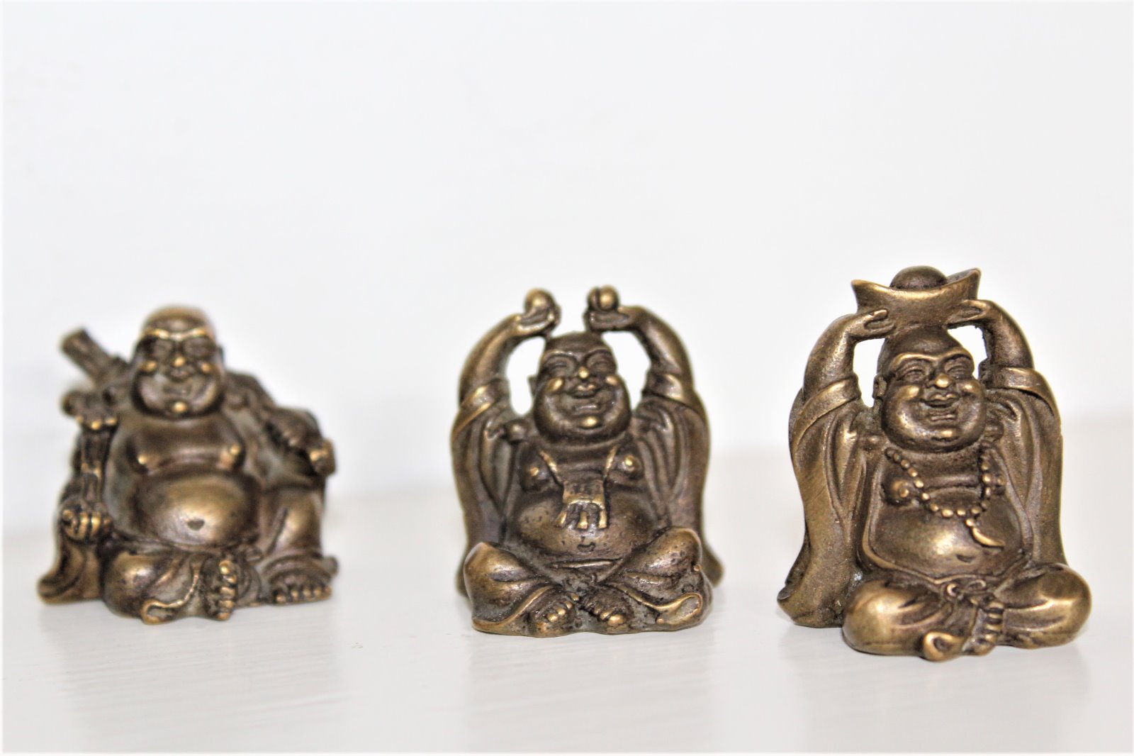 Six Finely Cast Small Chinese Bronze Buddha Possibly Gold or Scroll Weights