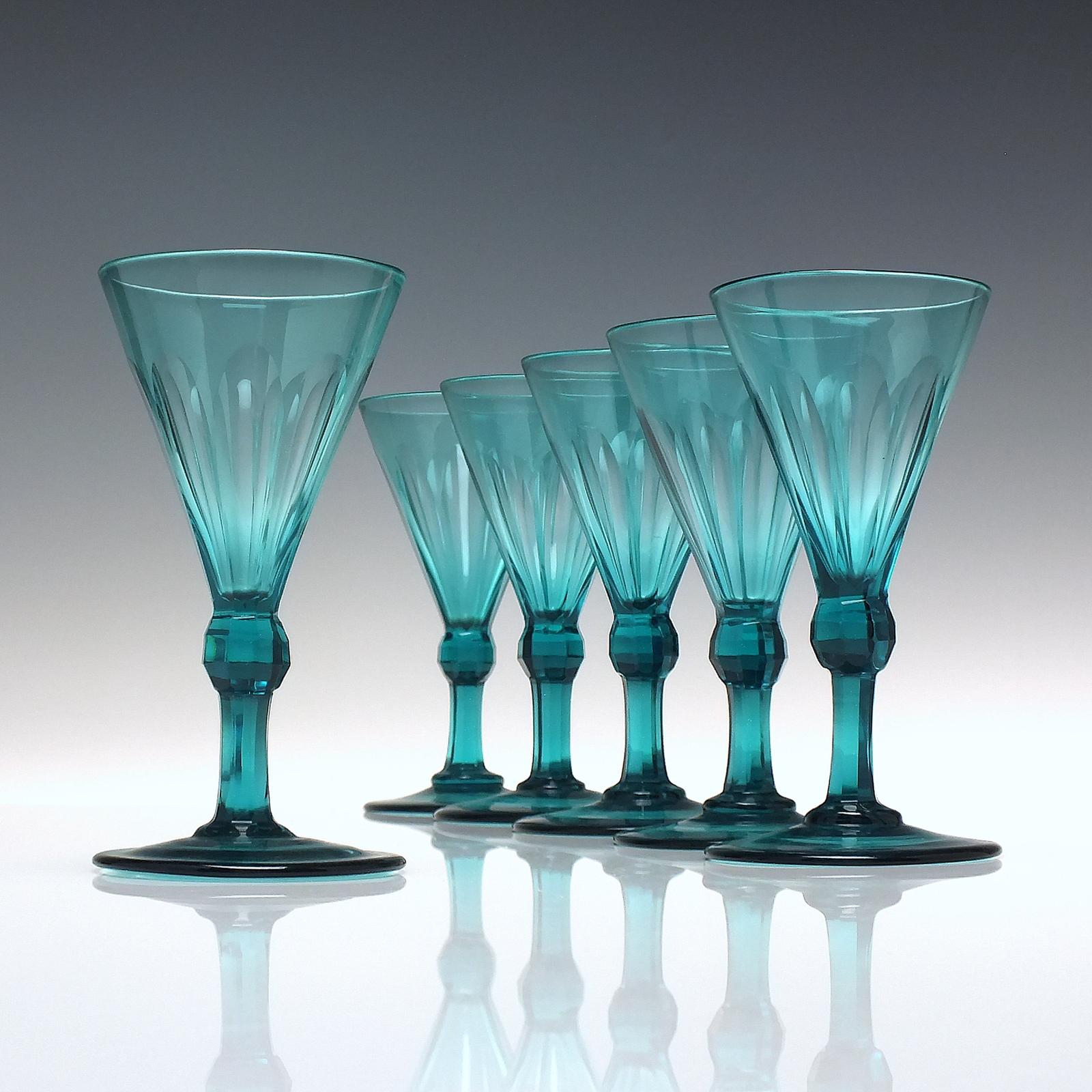 Six Georgian Regency Peacock Blue Wine Glasses c.1820