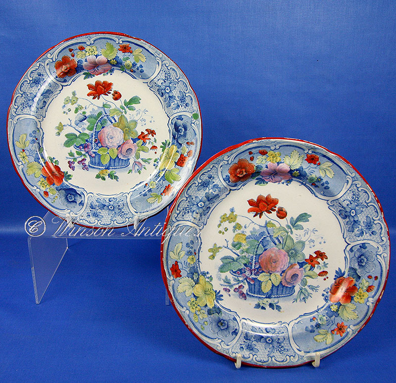 Six Mason's Earthenware Plates Floral Basket Pattern