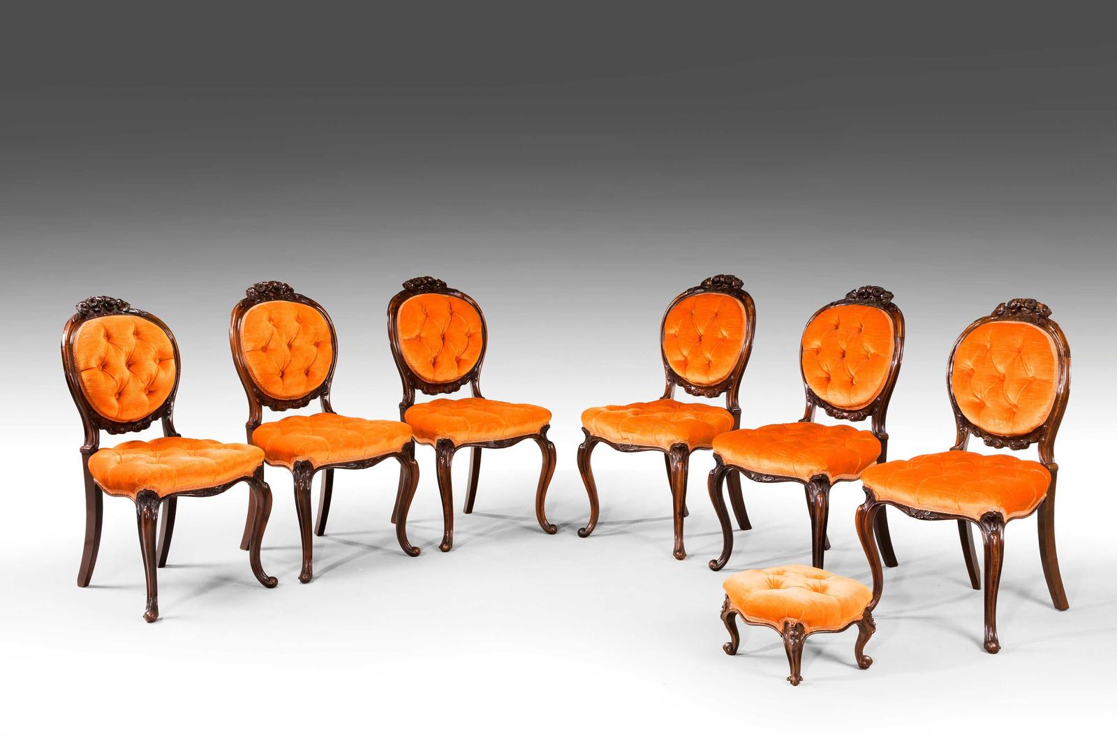 Six Mid 19th Century Rosewood Single Chairs & Stool