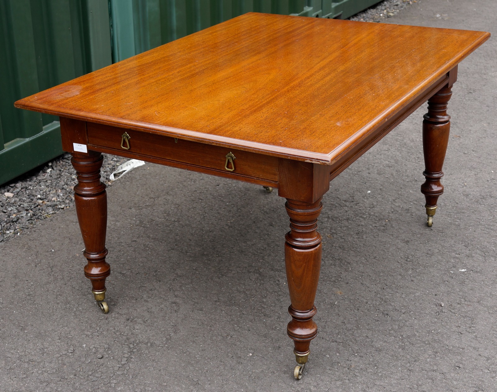 Six Seater Victorian Mahogany Table Supported on Finely Turned Legs Terminating on Solid Brass