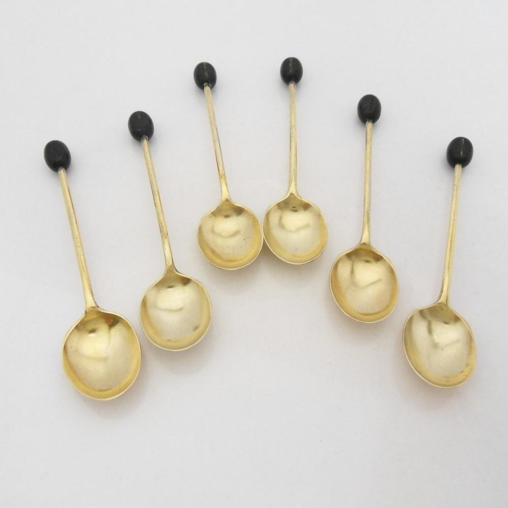 Six Silver Gilt Coffee Bean Spoons 1928 Mappin & Webb