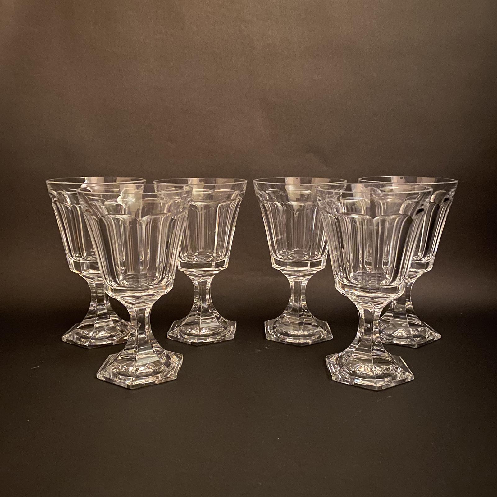 Six Val St Lambert 'Walewska' Crystal Wine Glasses