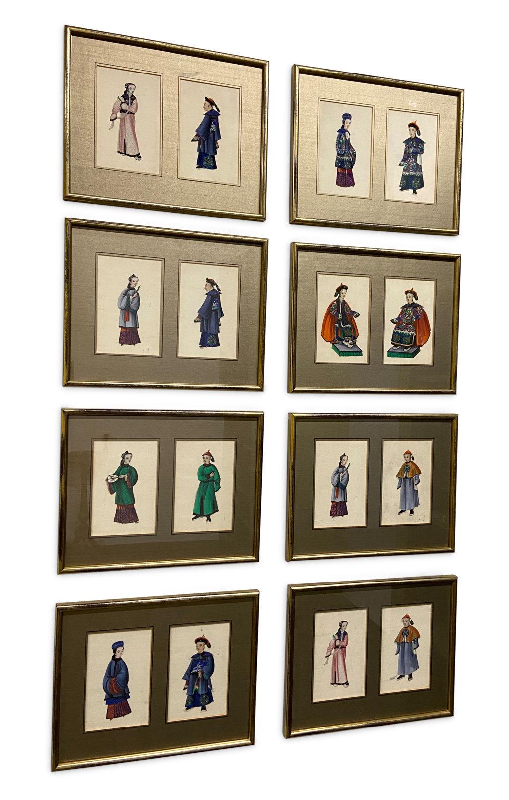 Sixteen Ink & Watercolour Hand Painted Chinese Figure Studies