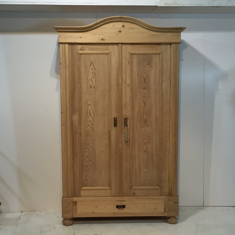 Slender, Arched Top Pine Double Wardrobe c.1920