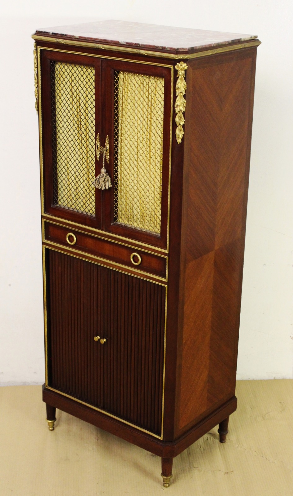 Slender Marble Topped French Mahogany Cabinet c.1890