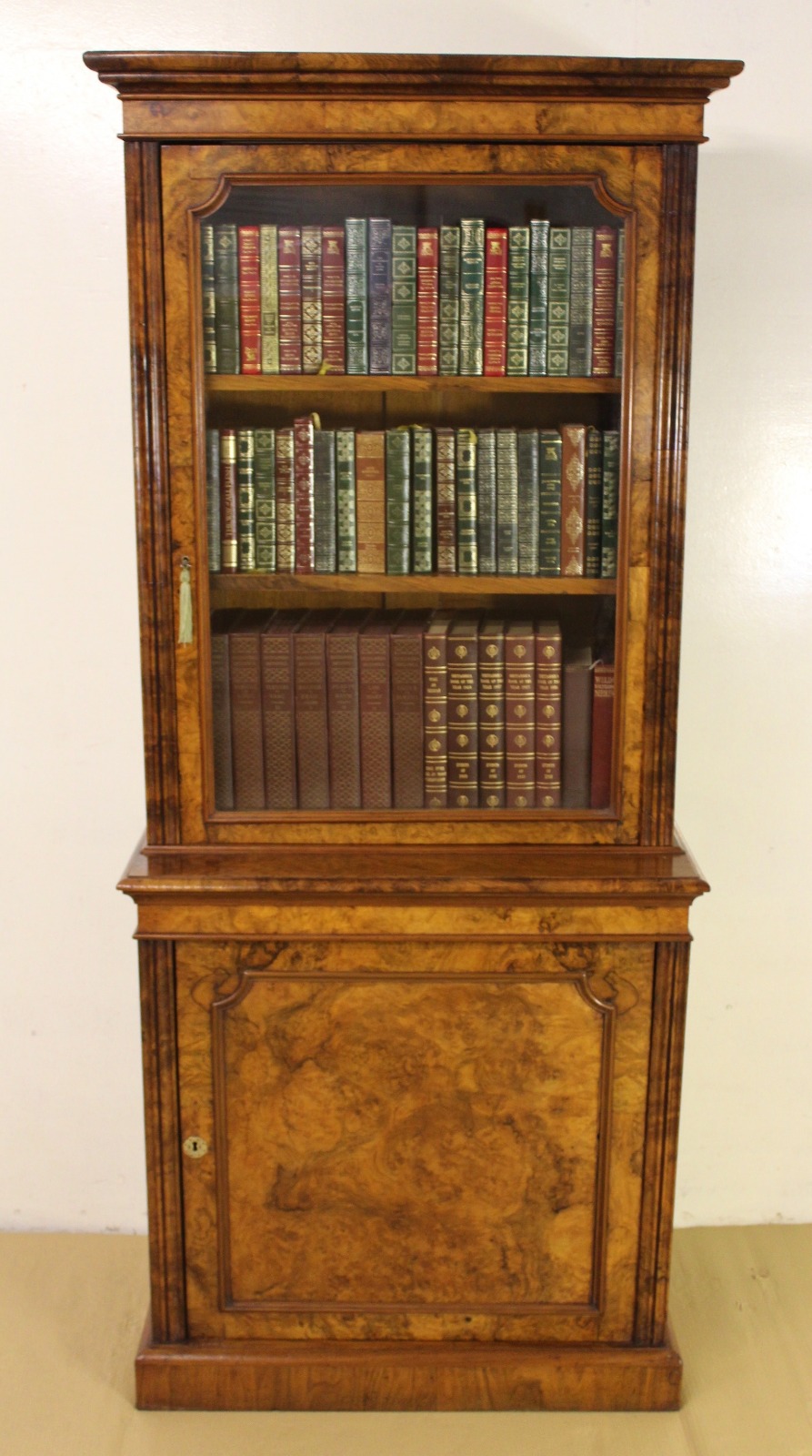 Slender Victorian Burr Walnut Library Bookcase (1 of 1)
