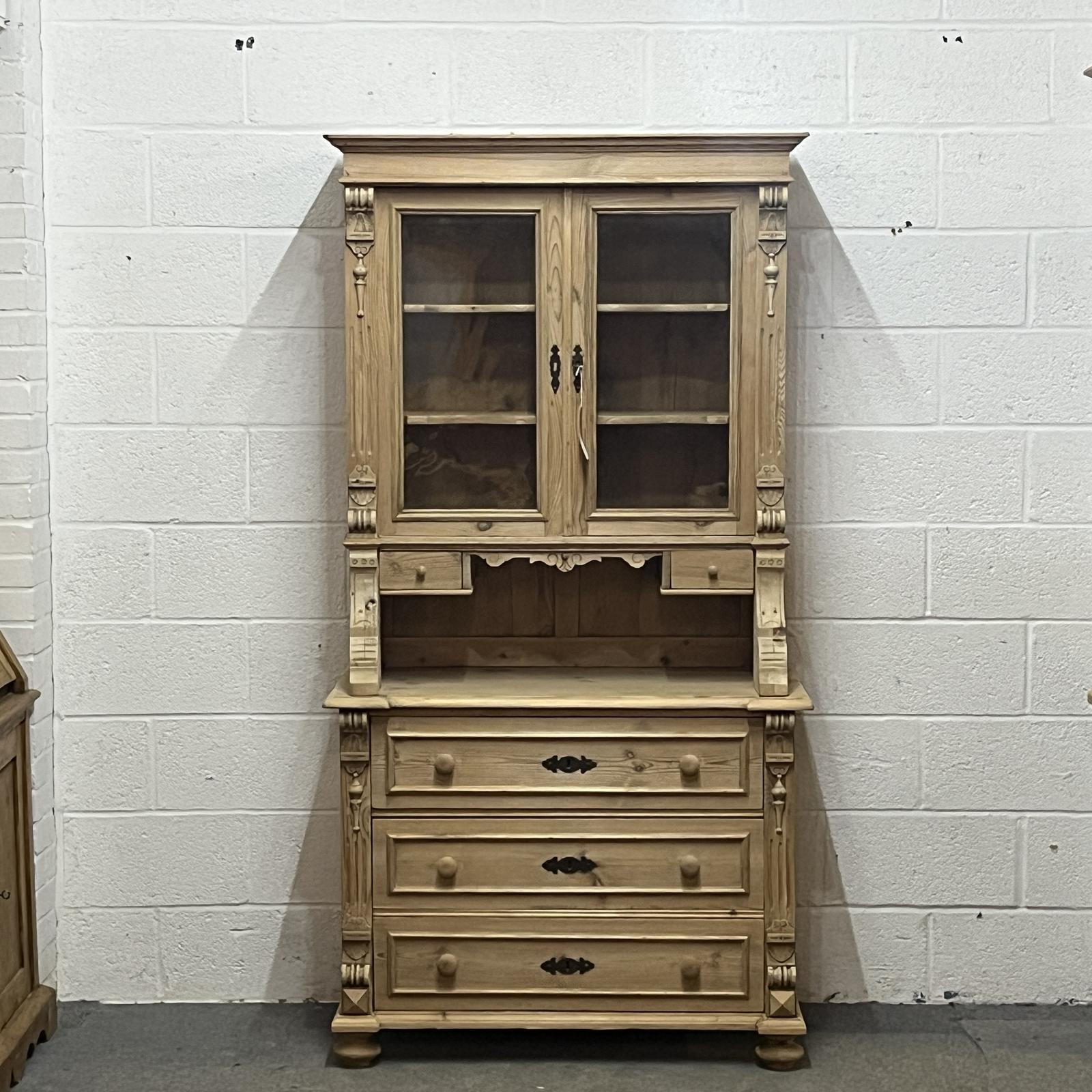 Slim Antique Pine Partly Glazed Dresser with Drawers in Base (1 of 12)