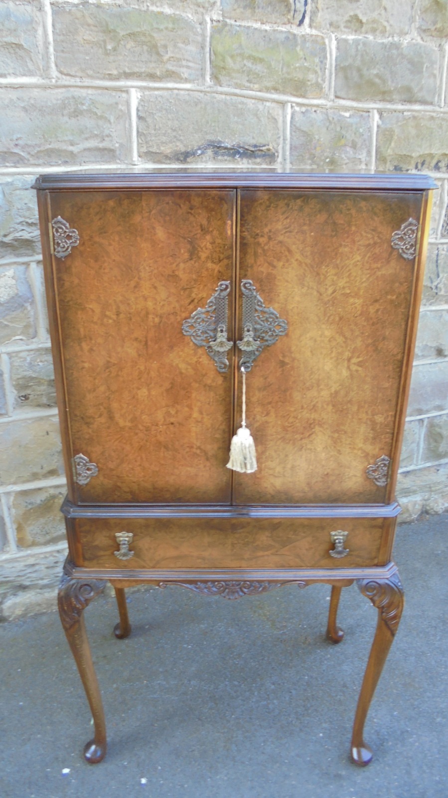 Slim Burr Walnut Cocktail Drinks Cabinet c.1920