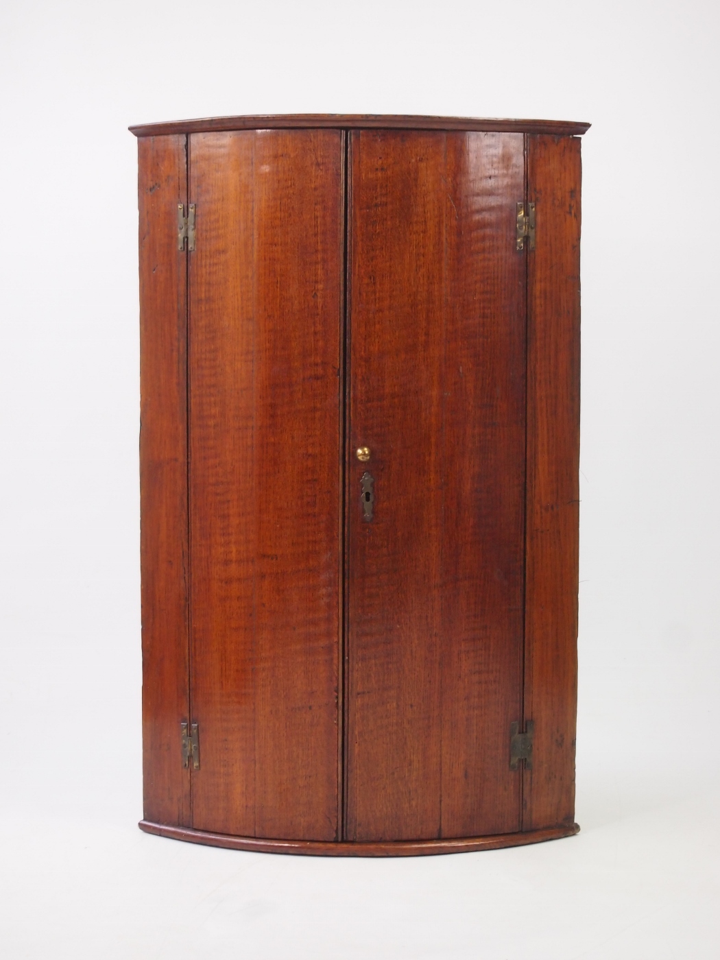 Slim Georgian Bow Fronted Oak Corner Cupboard