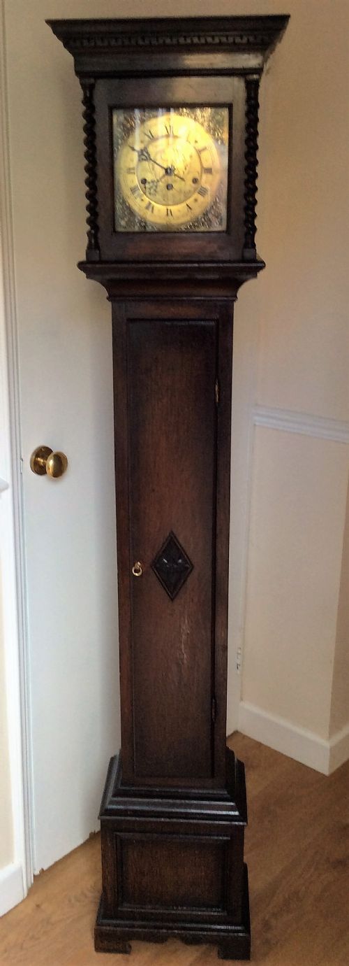 Slim Musical Barley Twist Oak Jacobean Style Grandmother Miniature Longcase Clock c.1900 (1 of 1)