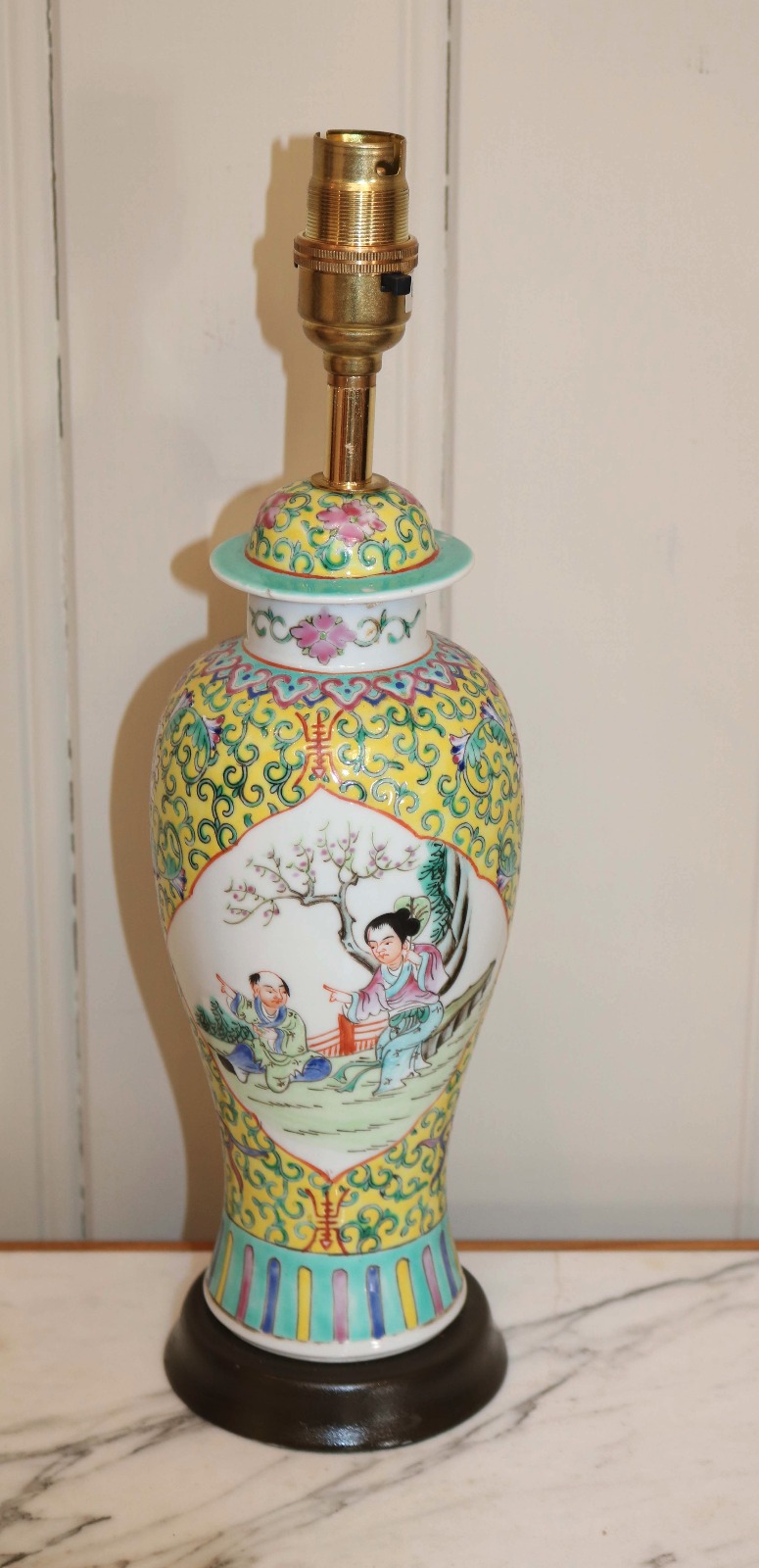Slim Oriental Enamelled Temple Jar Converted into a Table Lamp (1 of 1)