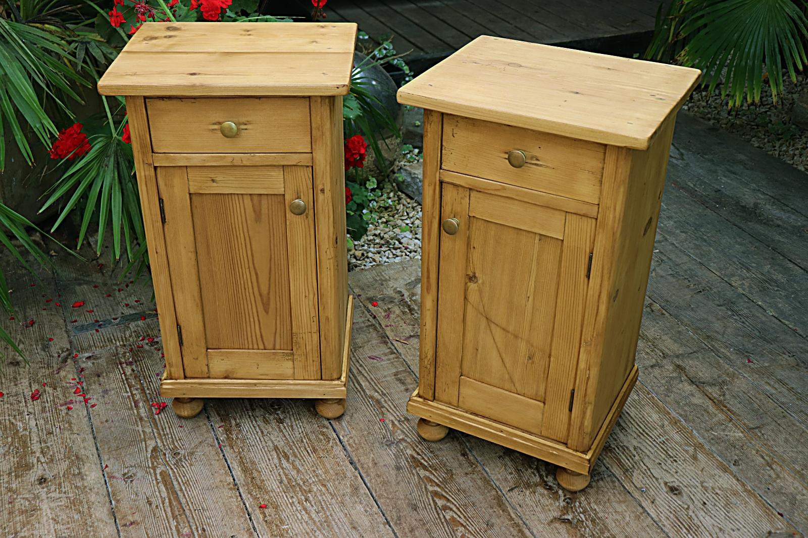 Slim Pair Old Pine Bedside Cabinets/ Cupboards/ Lamp Tables