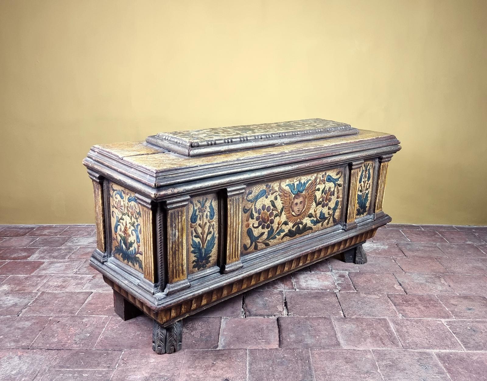 Small 17th Century Italian Polychrome Sarcophagus Cassone