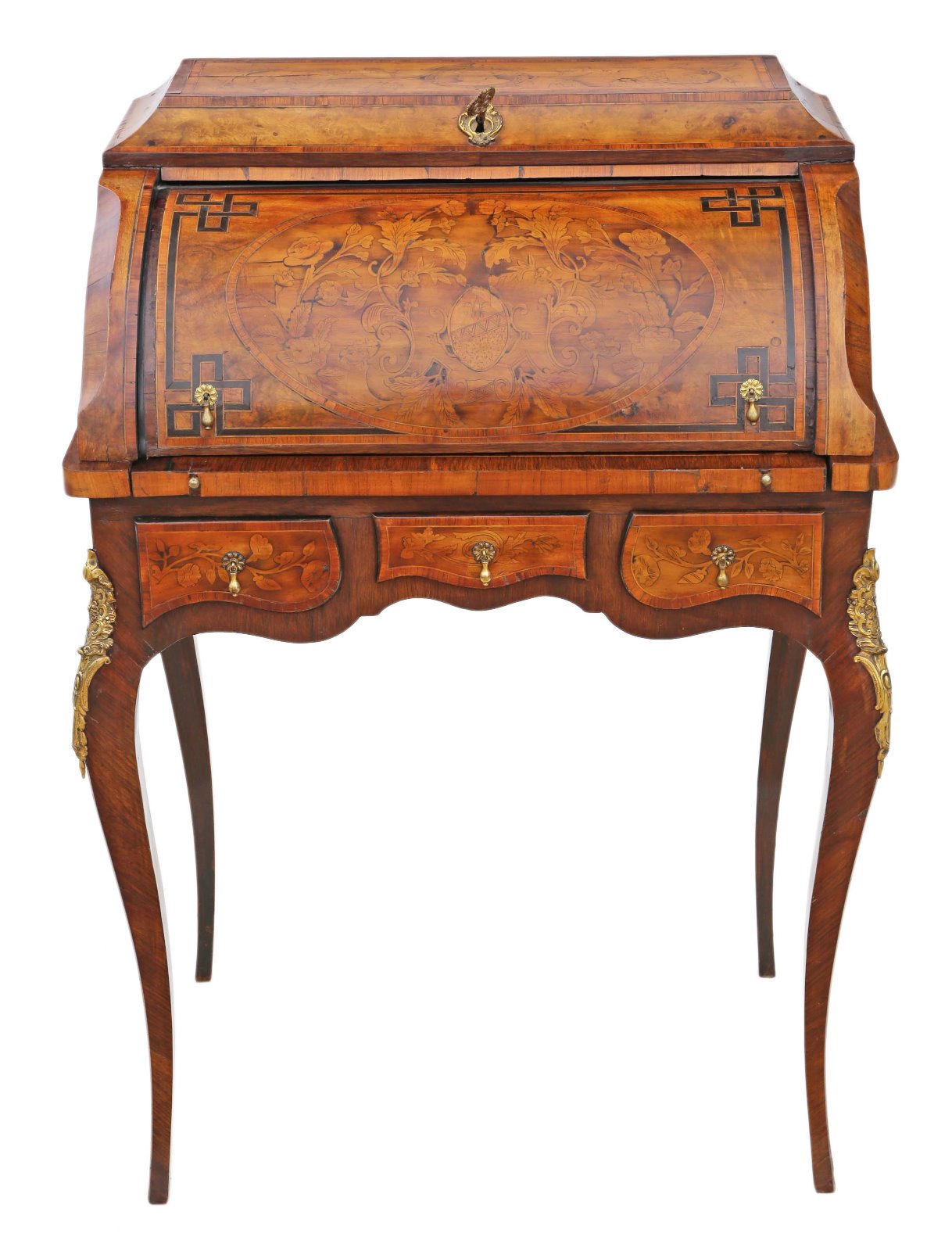 Small 19th Century Marquetry Cylinder Bureau Desk