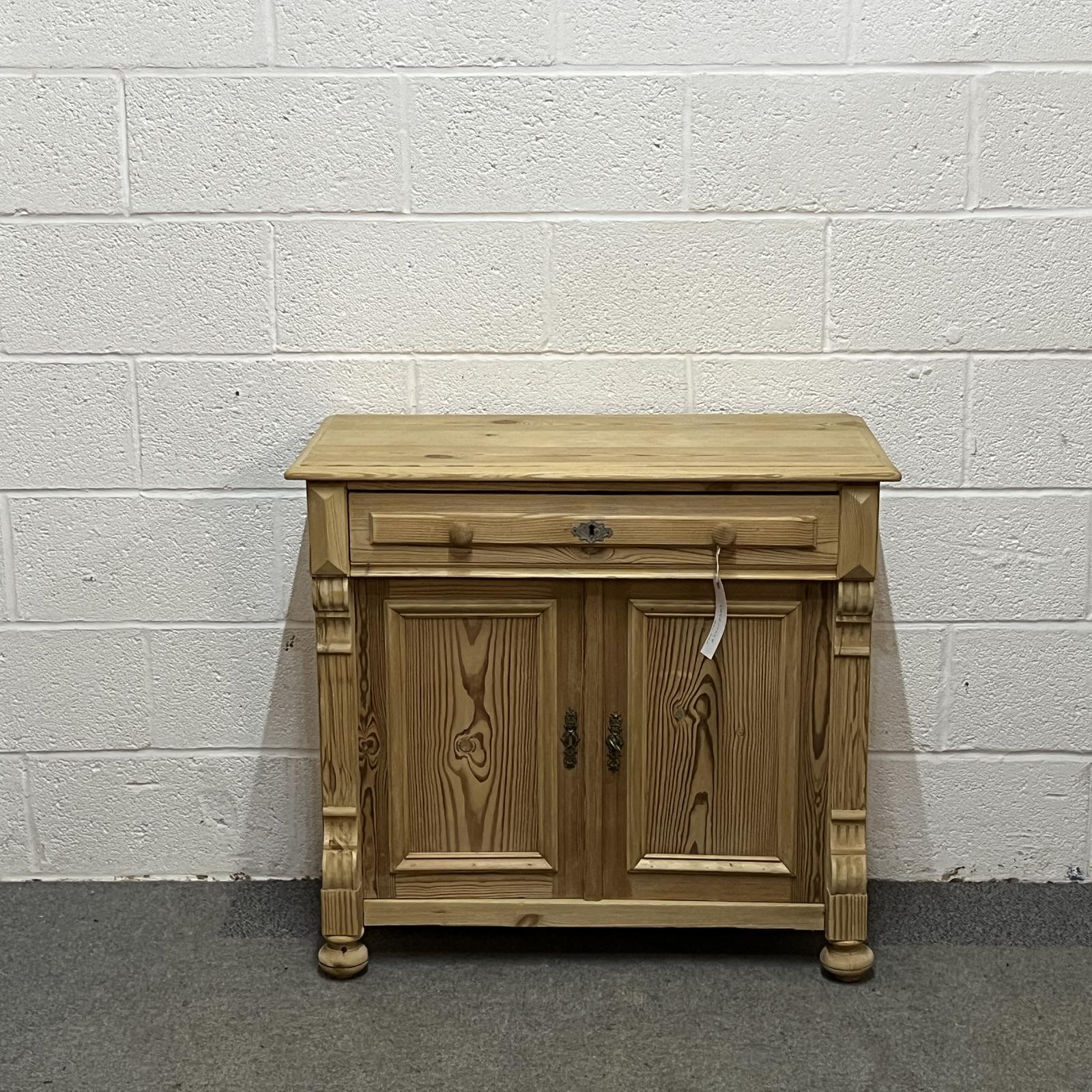 Small 2 Door Antique Pine Cupboard with Top Drawer