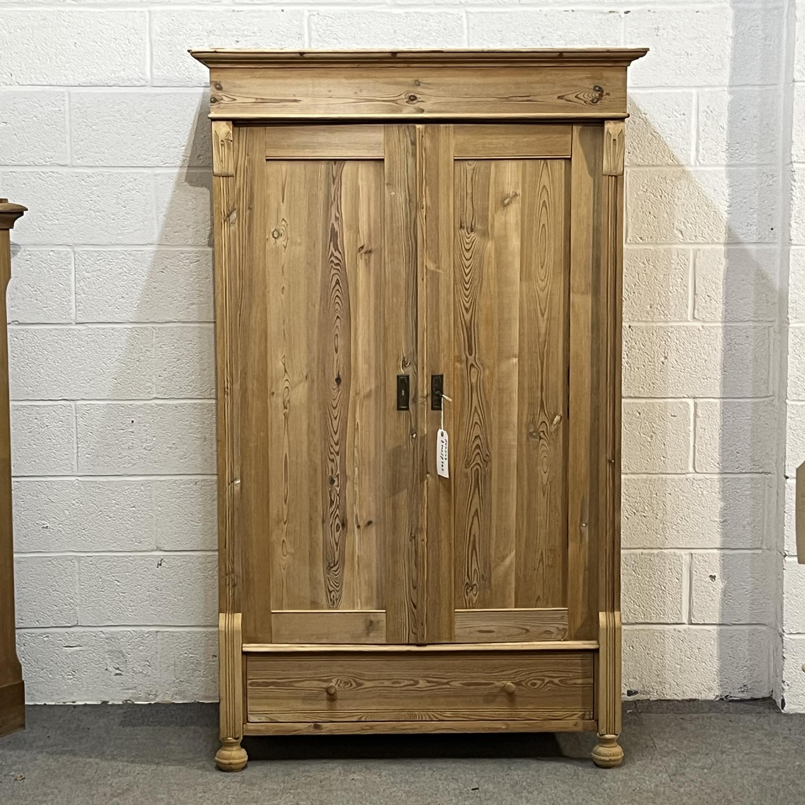 Small Antique Pine Wardrobe with Bottom Drawer