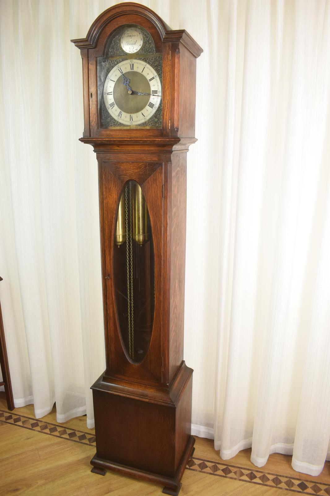 Small (< 70") Grandmother or Grandfather Oak Longcase Triple Weight Musical Quarter Chiming Clock with Underslung Rheingold-gongs (1 of 11)