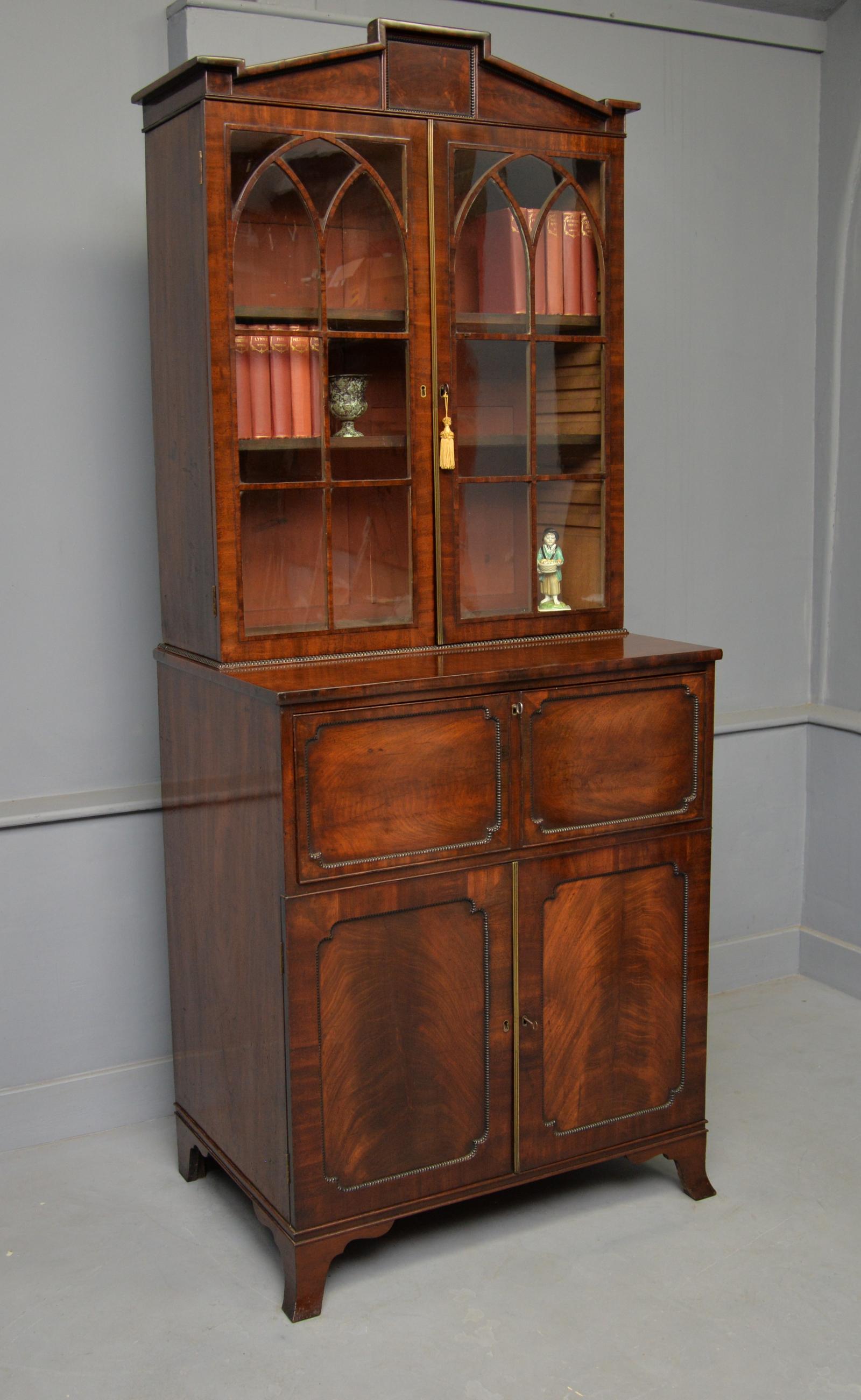 Small and Elegant Regency Mahogany Secretaire Bookcase Desk