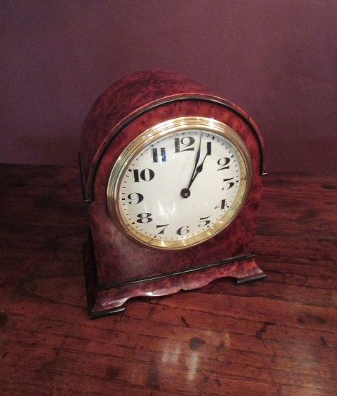 Small Antique Amboyna & Ebony Inlaid Mantel Clock