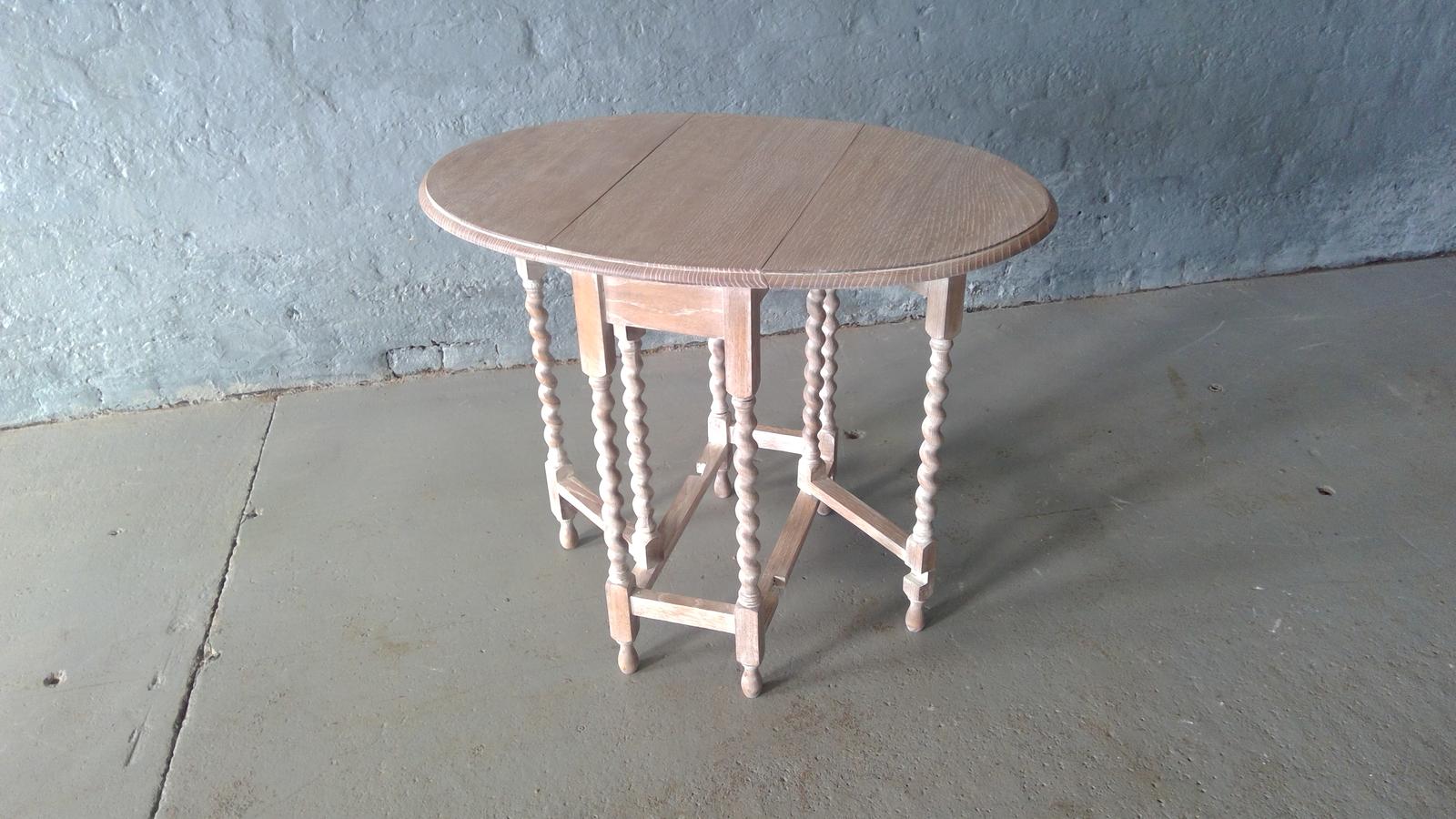 Small Antique Barley Twist Gate Leg Table in a Limed Scrubbed Finish