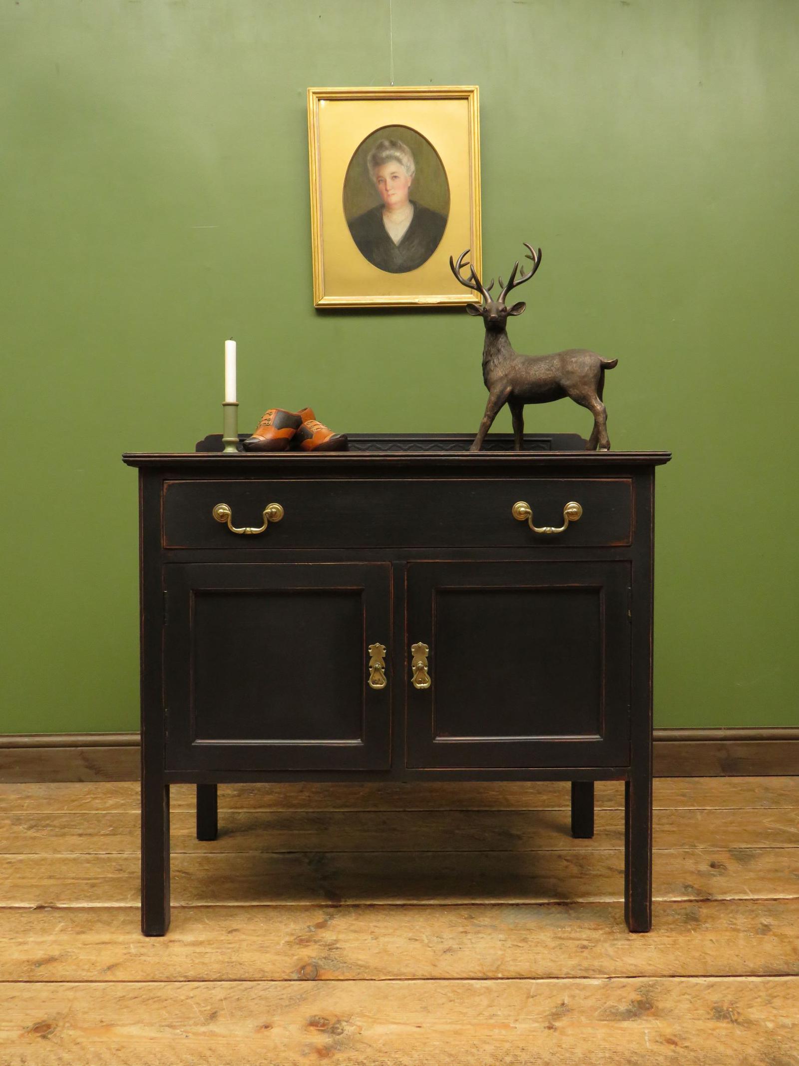 Small Antique Black Painted Cabinet with Drawer, Printer Cupboard, Gothic