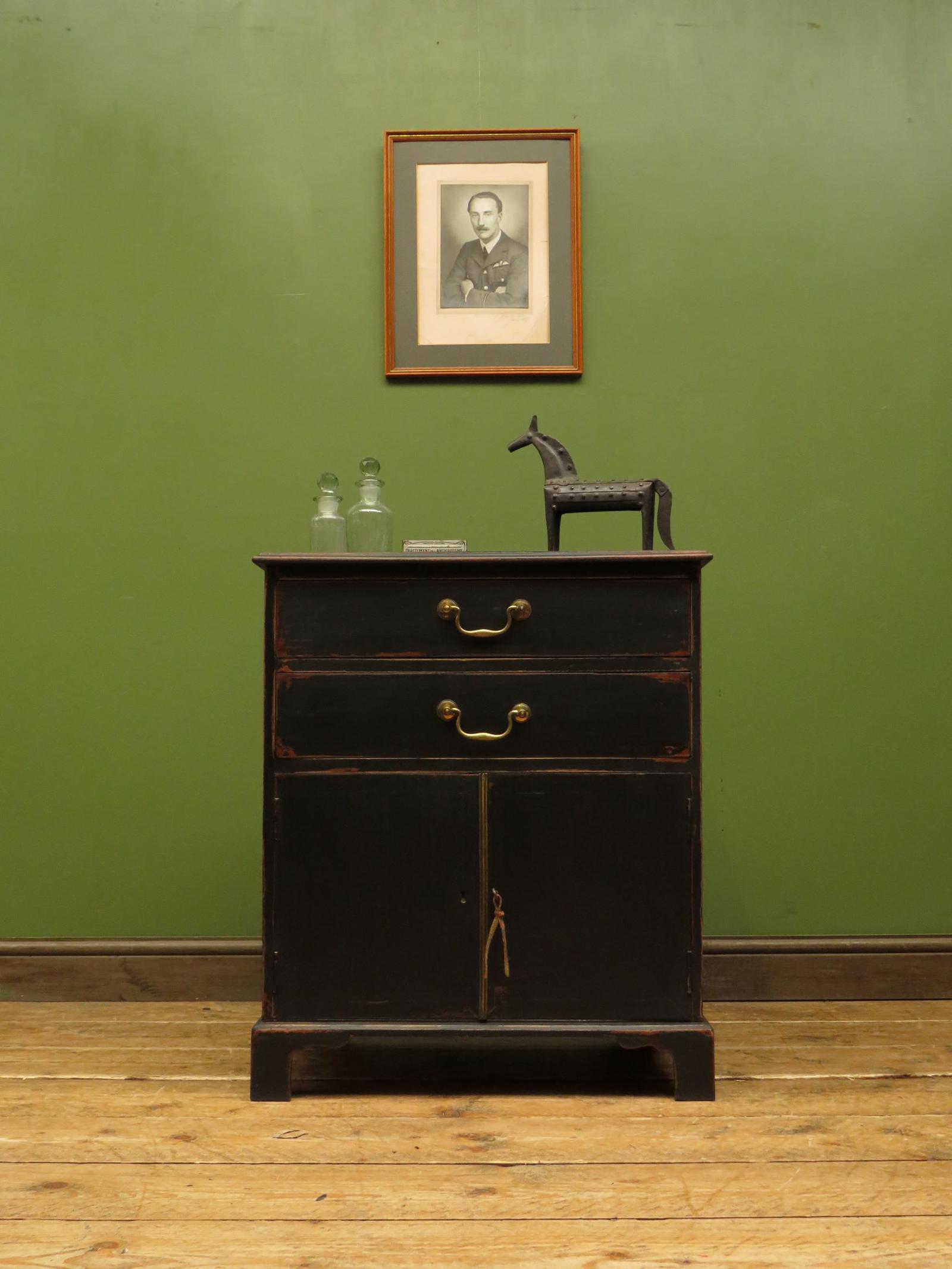 Small Antique Black Painted Cabinet with Drawers, Printer Cupboard, Gothic