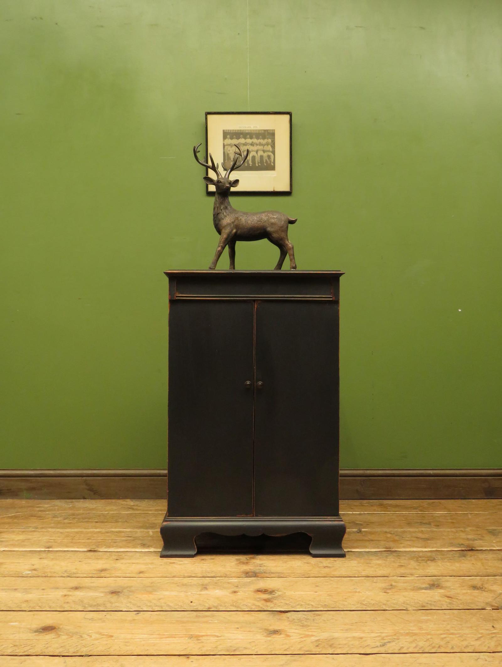 Small Antique Black Painted Cabinet with Internal Slides, Collectors or Crafting