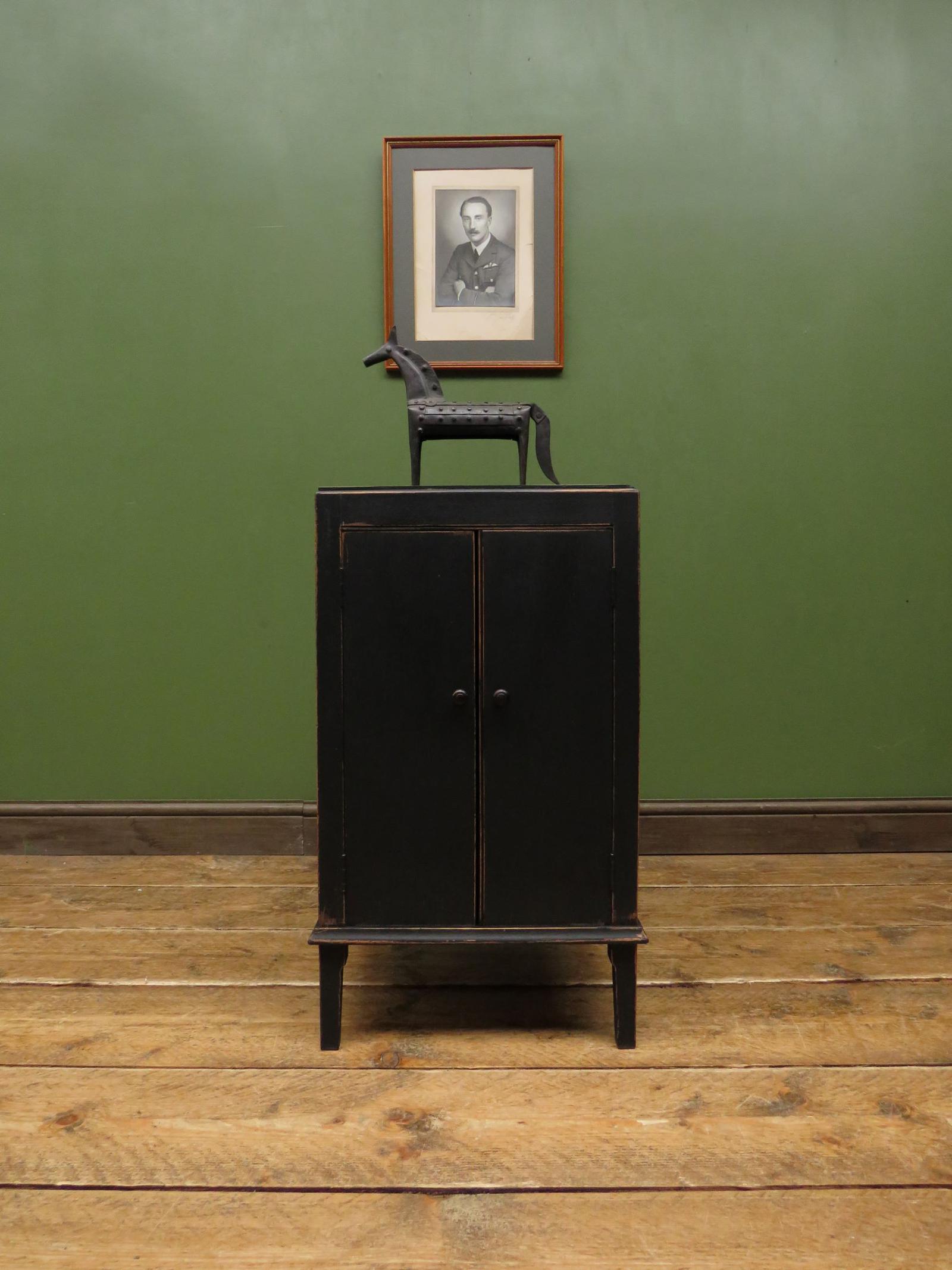 Small Antique Black Painted Music Cabinet, Office Storage, Stationery Cabinet