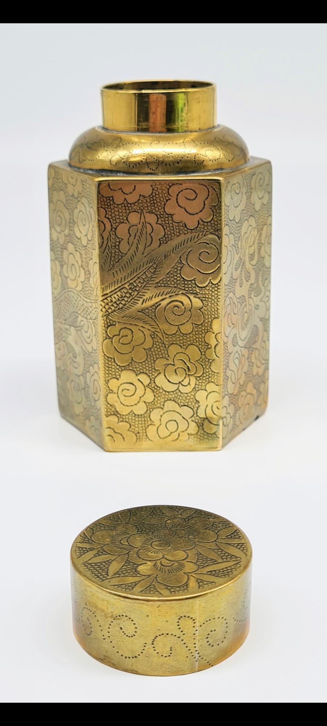 Small Antique Chinese Brass Tea Caddy Highly Ornate