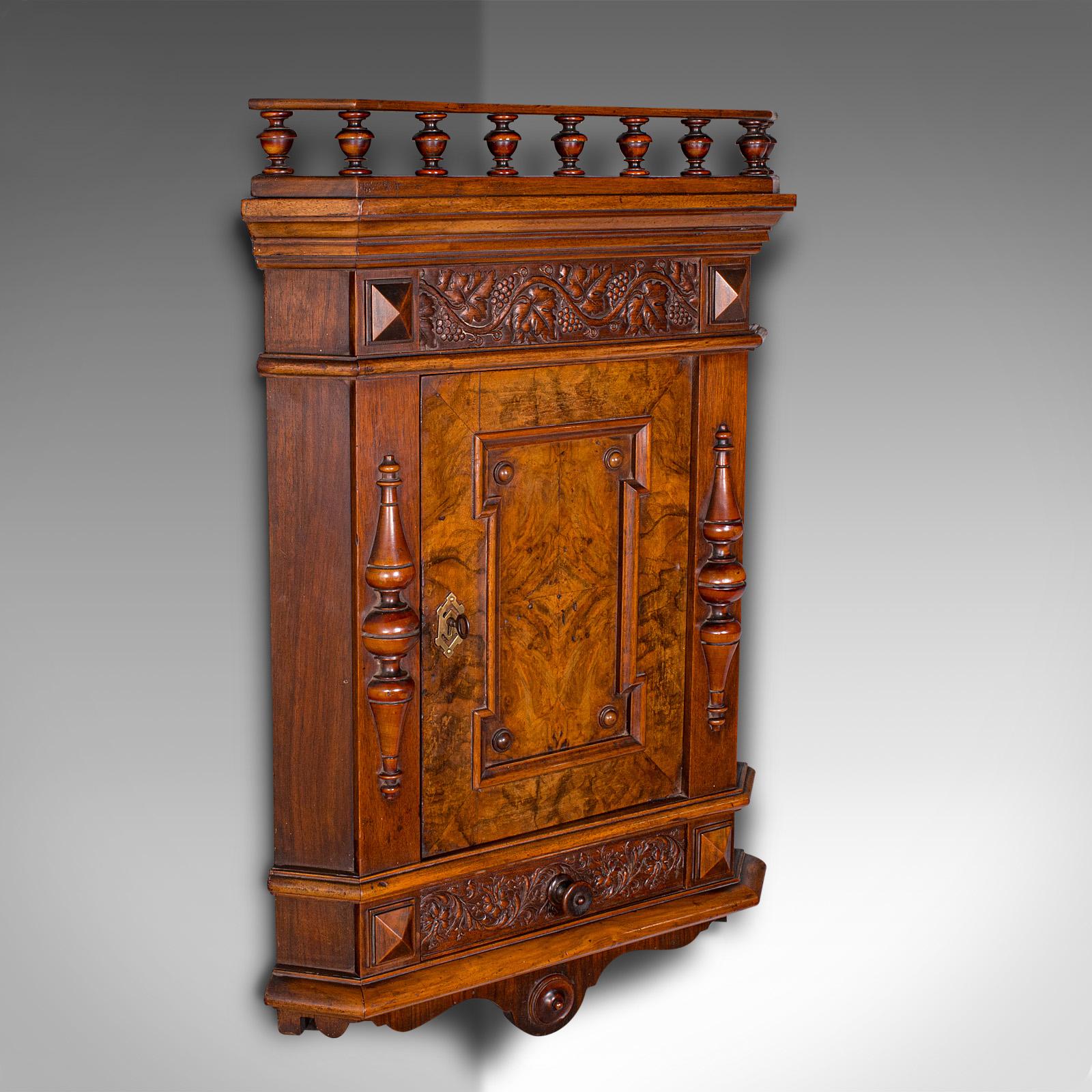 Small Antique Corner Wall Cupboard, Italian, Walnut, Cabinet, Victorian, c.1900