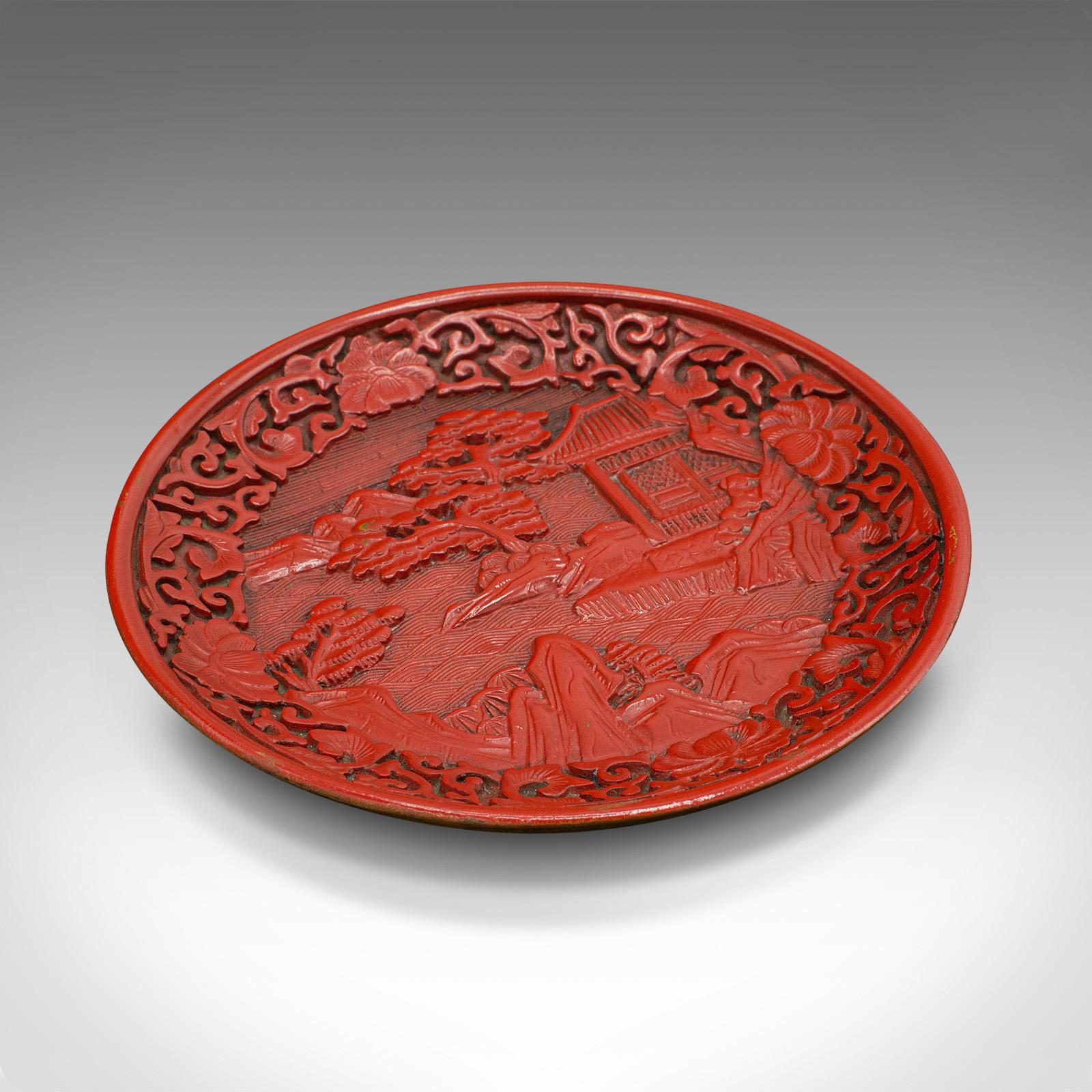Small Antique Decorative Cinnabar Dish, Chinese, Display Plate, Qing, Victorian