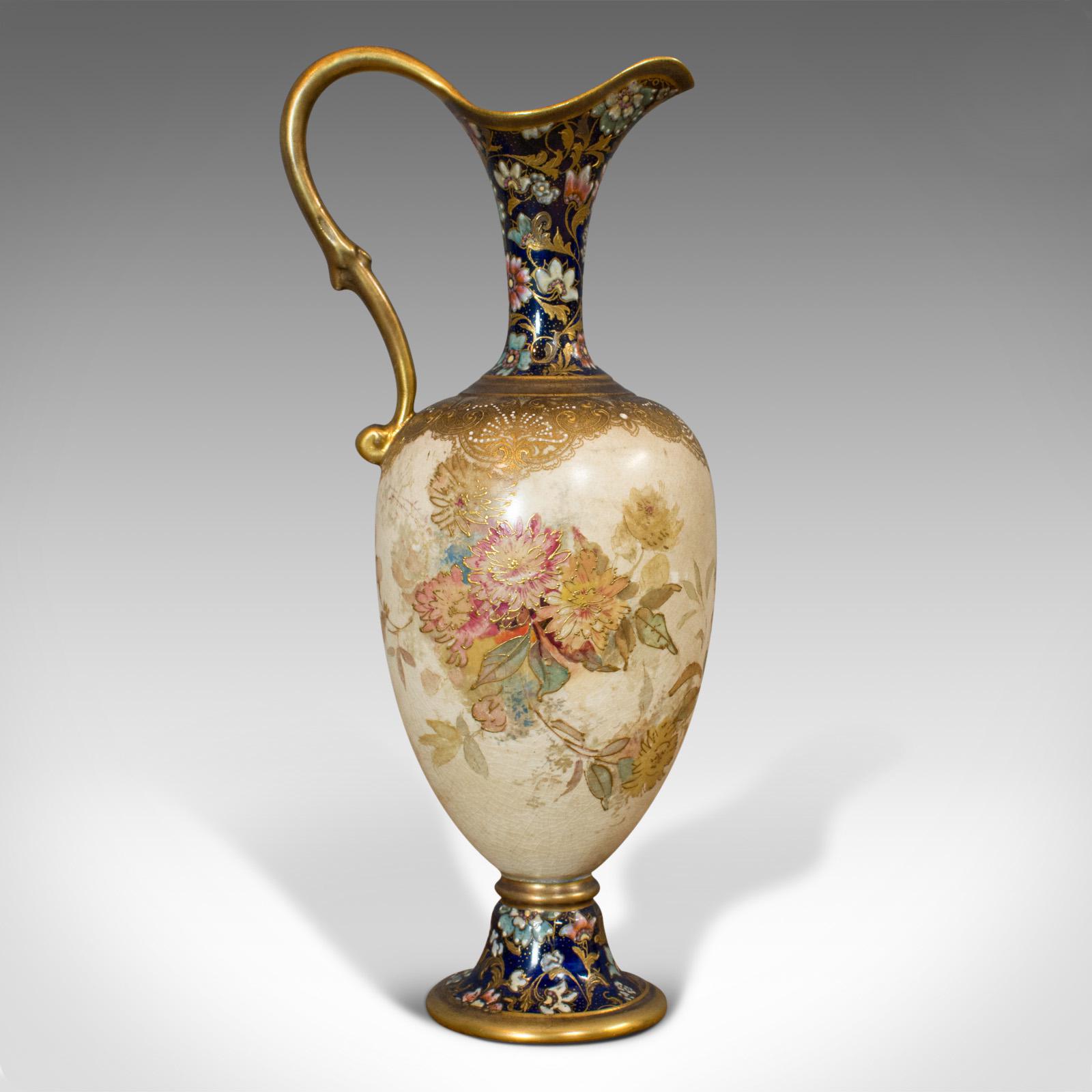 Small Antique Decorative Jug, English, Ceramic Vase, Doulton, Victorian c 1900