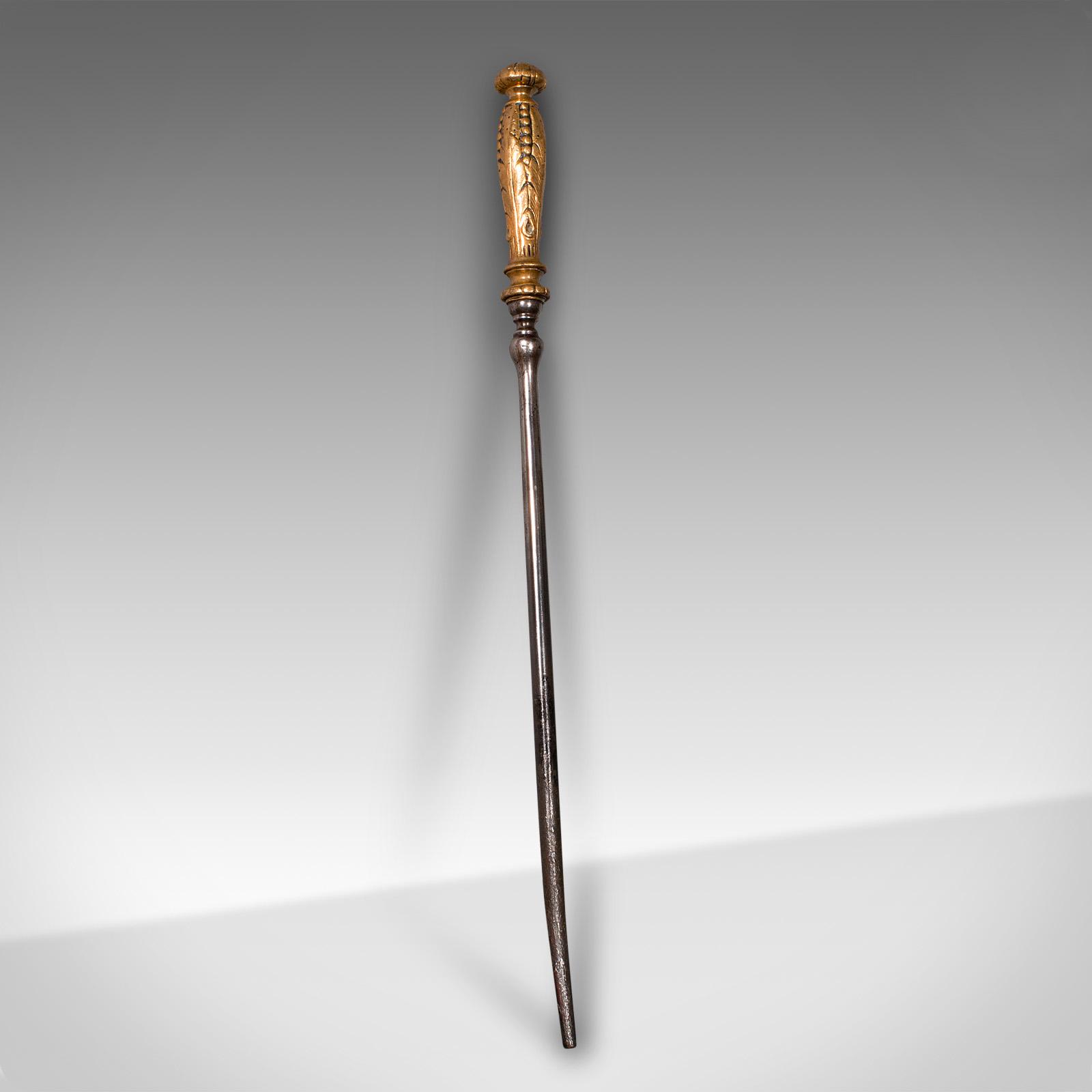 Small Antique Fire Poker, Brass, Cast Iron, Decorative Fireside Tool, Georgian