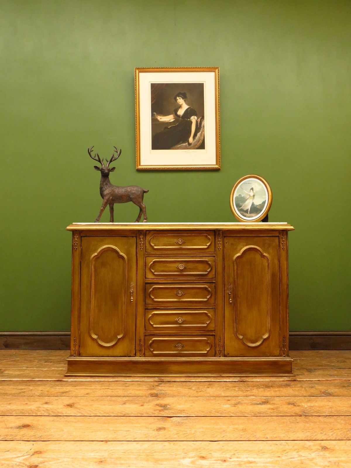 Small Antique Gold Painted Sideboard with Marble Top