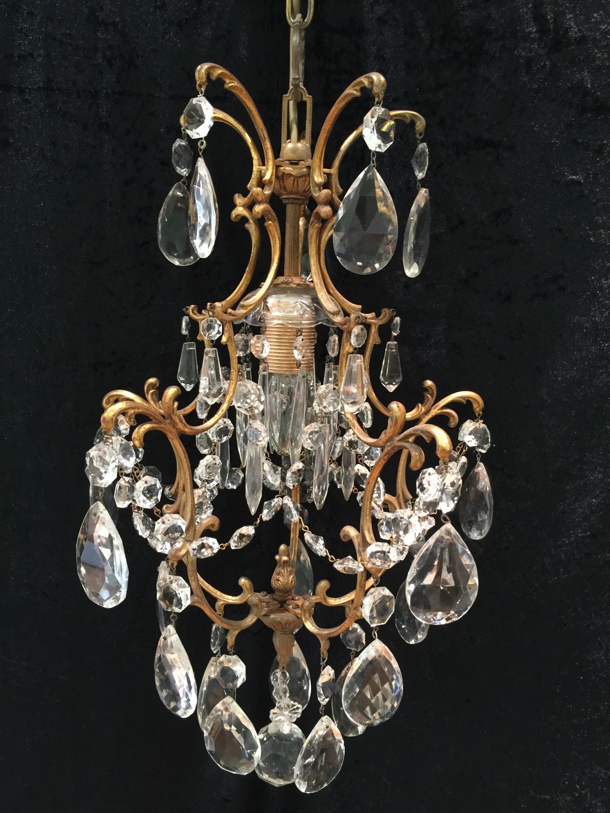 Small Antique Italian Gilt Brass Chandelier c.1910