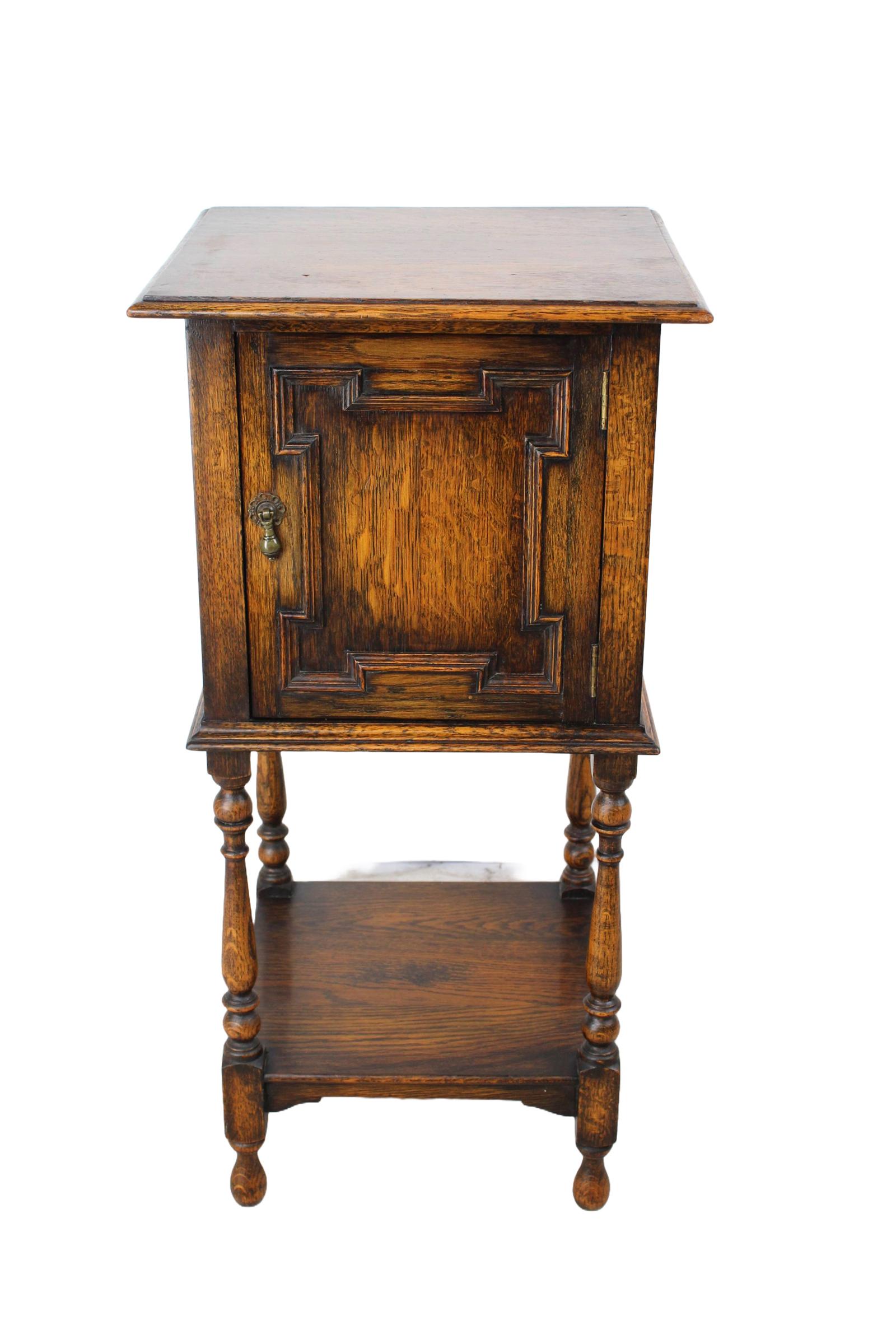 Small Antique Jacobean Revival Oak Bedside Cabinet