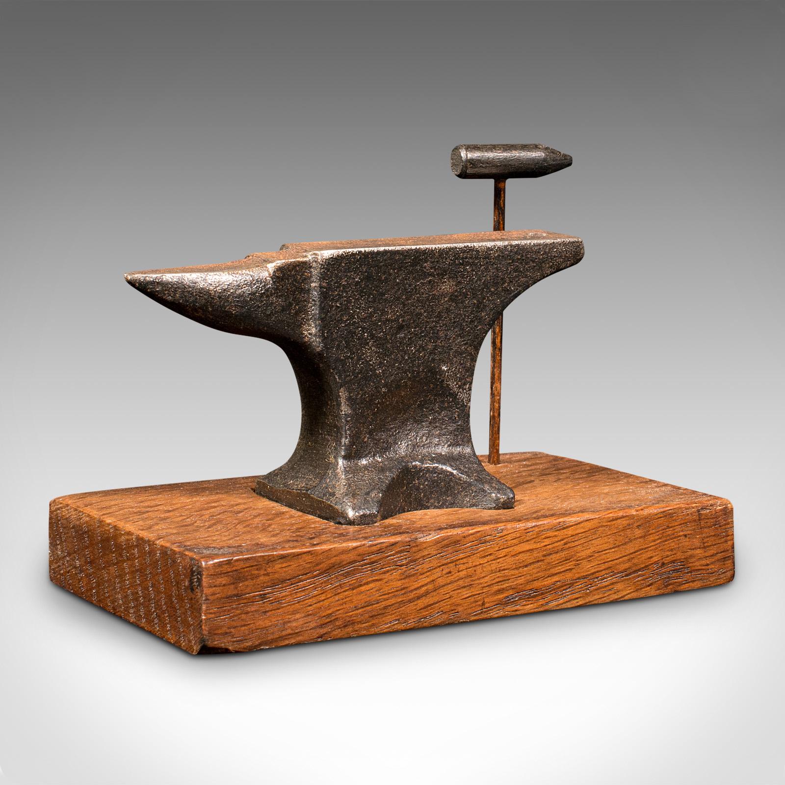 Small Antique Jeweller's Anvil, English, Cast Iron, Oak, Decorative, Edwardian