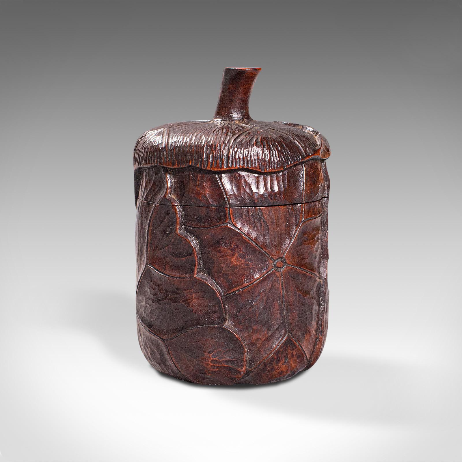 Small Antique Lidded Pot, Oriental, Chinese Elm, Carved Treen, Victorian, C.1900 (1 of 12)