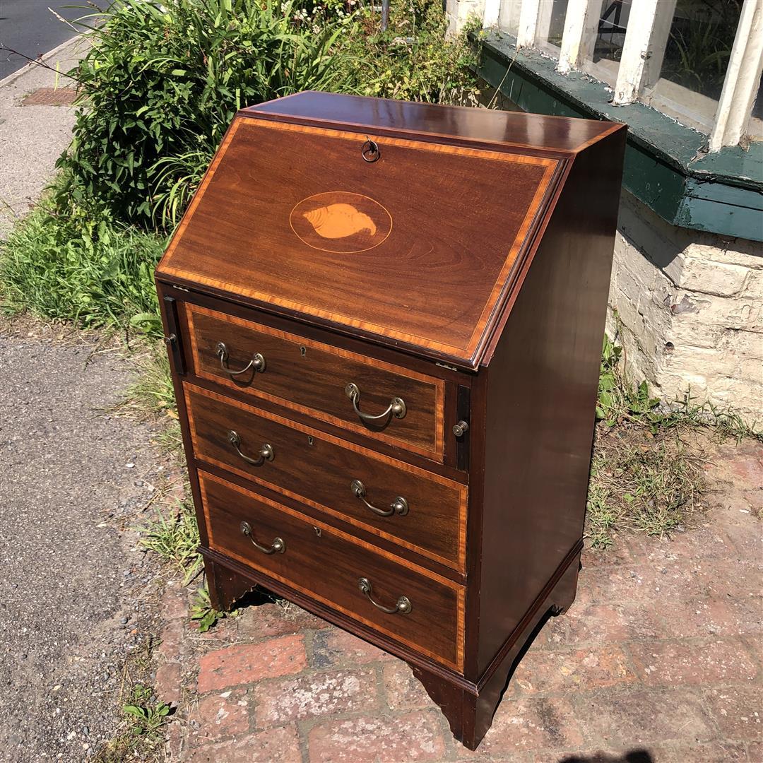 Small Antique Mahogany Bureau with Drawers Below 1920s