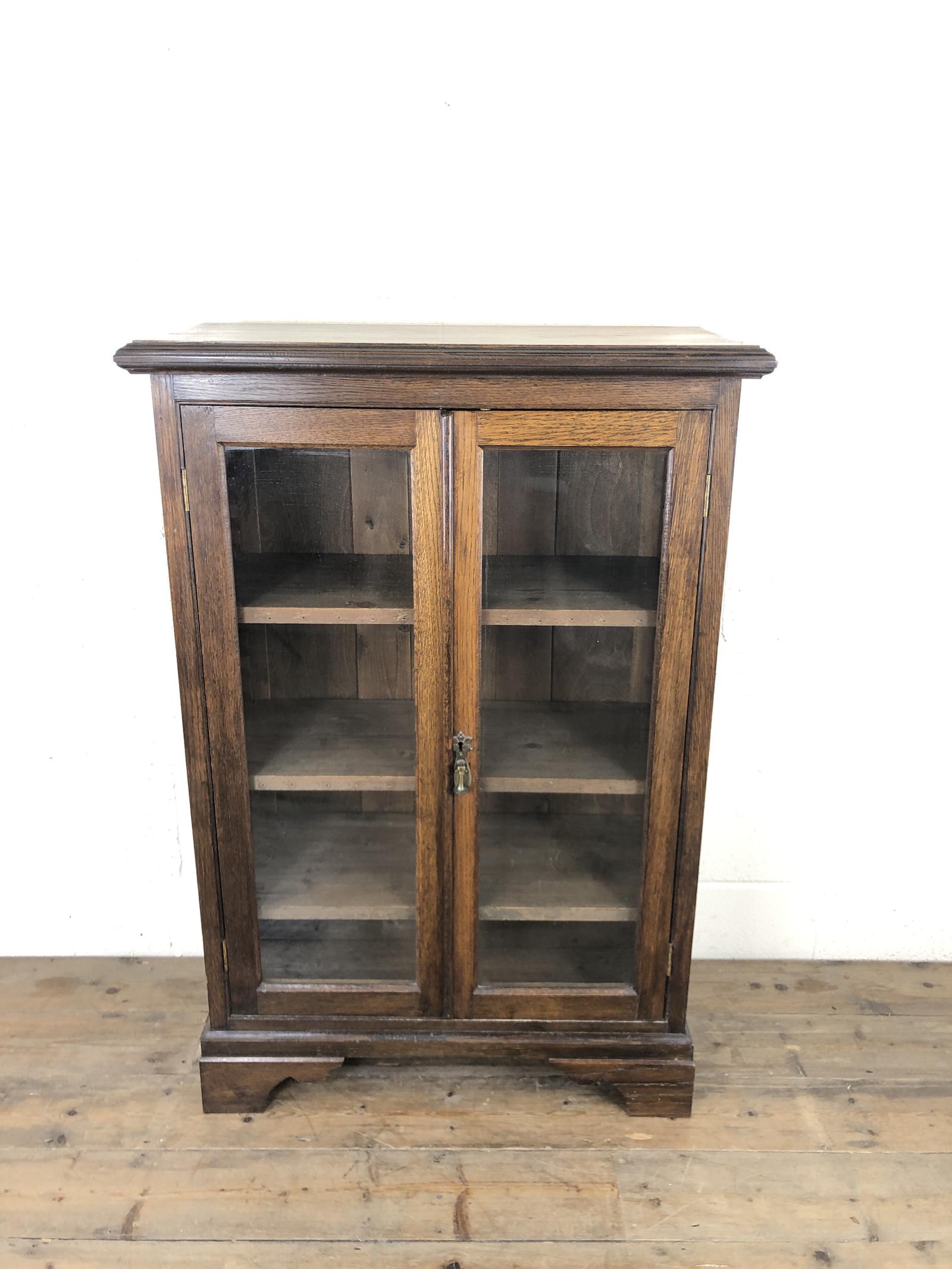Small Antique Oak Glazed Bookcase or Display Cabinet
