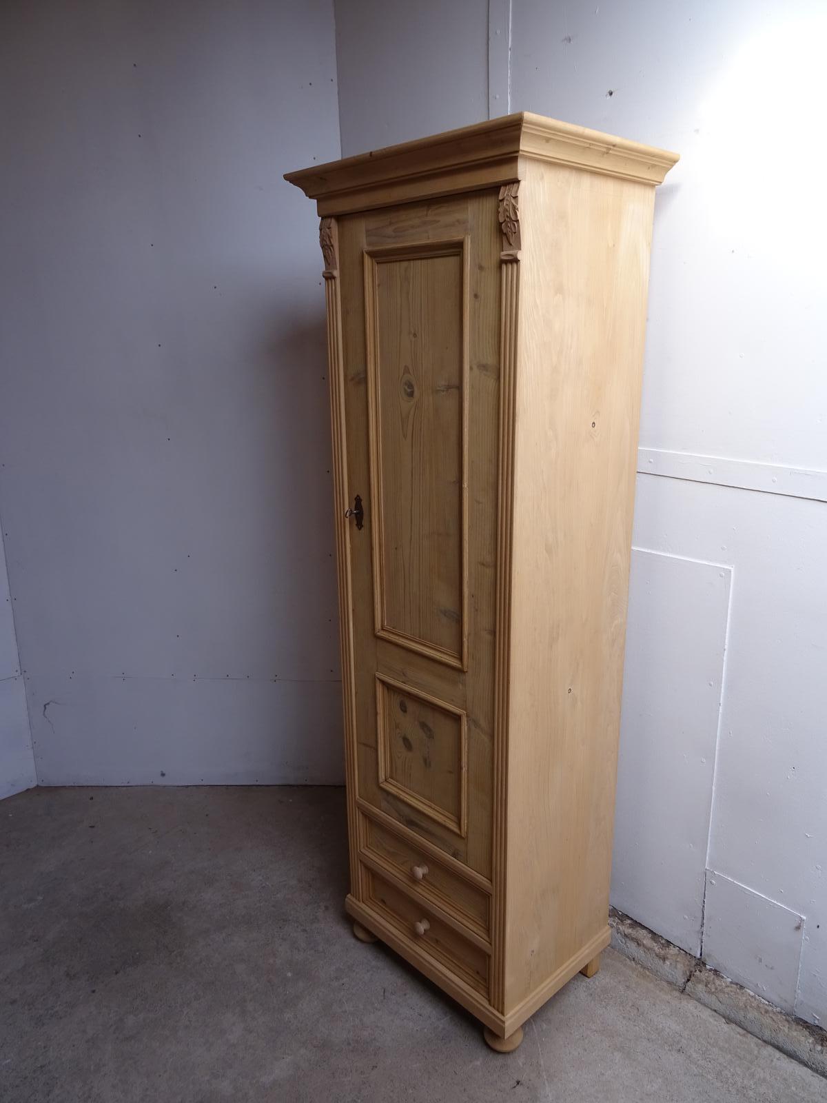 Small Antique Pine 1 Door 2 Drawer Kitchen / Storage Cupboard to wax / paint